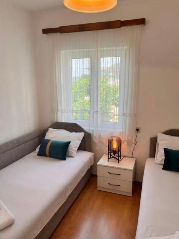 В Сутоморе на улице Рутки продается дом на 2 апартамента. Каждый апартамент по 78м2, состоящие из кухни, совмещенной с гостиной, 2 спален, санузла и террасы. Апартаменты меблированы и оснащены всей необходимой техникой. Всего участок 214 м2, сам двор 136 м2. Есть летняя кухня. Городская вода и канализация. До магистрали 200 метров и 800 до моря. Дом легализован