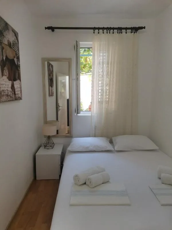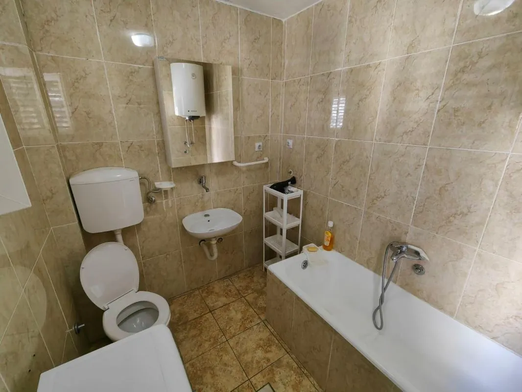 Продажа Сутоморе № 7640. В Сутоморе на улице Рутки продается дом на 2 апартамента. Каждый апартамент по 78м2, состоящие из кухни, совмещенной с гостиной, 2 спален, санузла и террасы. Апартаменты меблированы и оснащены всей необходимой техникой. Всего участок 214 м2, сам двор 136 м2. Есть летняя кухня. Городская вода и канализация. До магистрали 200 метров и 800 до моря. Дом легализован.