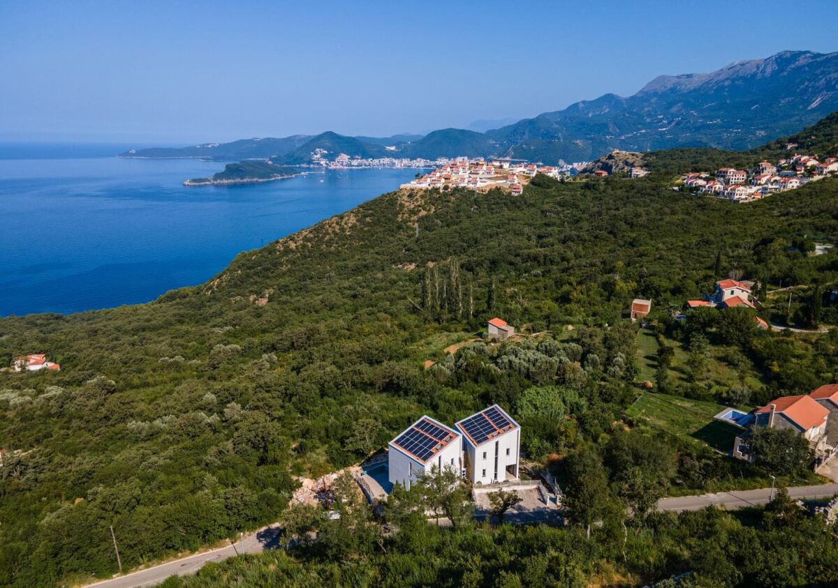 Две виллы, удостоенные Международной премии в области недвижимости, самодостаточные и энергонезависимые, предлагающие редкое сочетание роскоши, дизайна и современного экологичного образа жизни. Расположены на вершине холма с великолепным видом на Адриатику, окружены природой и полной тишиной. 🏡 Виллы на продажу ВИЛЛА A – €850,000 • Внешняя отделка полностью завершена • Бесконечный бассейн готов • Интерьер на серой стадии — готов к индивидуальной отделке покупателем ВИЛЛА B – €1,150,000 • Полностью завершена и меблирована • Премиальная кухня, дизайнерские ванные комнаты • Технология умного дома и продвинутые системы • Готова к заселению 🌿 Основные характеристики (обе виллы) • Вилла 230 м² на участке 400 м² • Бесконечный бассейн (7×5 м) • Всего 5 минут до пляжа Crvena Glavica, 10 минут до Sveti Stefan, 15 минут до Будвы • Несколько систем устойчивого развития: ◦ Солнечная энергия (10 кВт) → €0 коммунальных платежей ◦ Тройное энергосберегающее стекло ◦ Сбор дождевой воды и автоматический полив ◦ Умный дом с ИИ + полный комплекс безопасности 💶 Варианты оплаты • Гибкие условия (возможна рассрочка) • Резервирование с возвратом €5,000