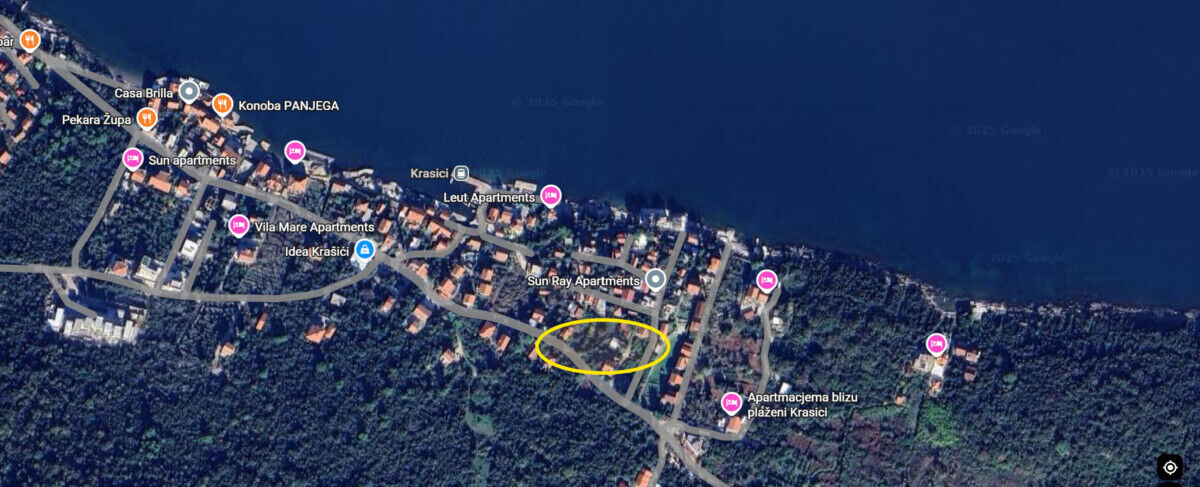 Участок в Крашичах – 50 метров от моря, выход на частный пляж.