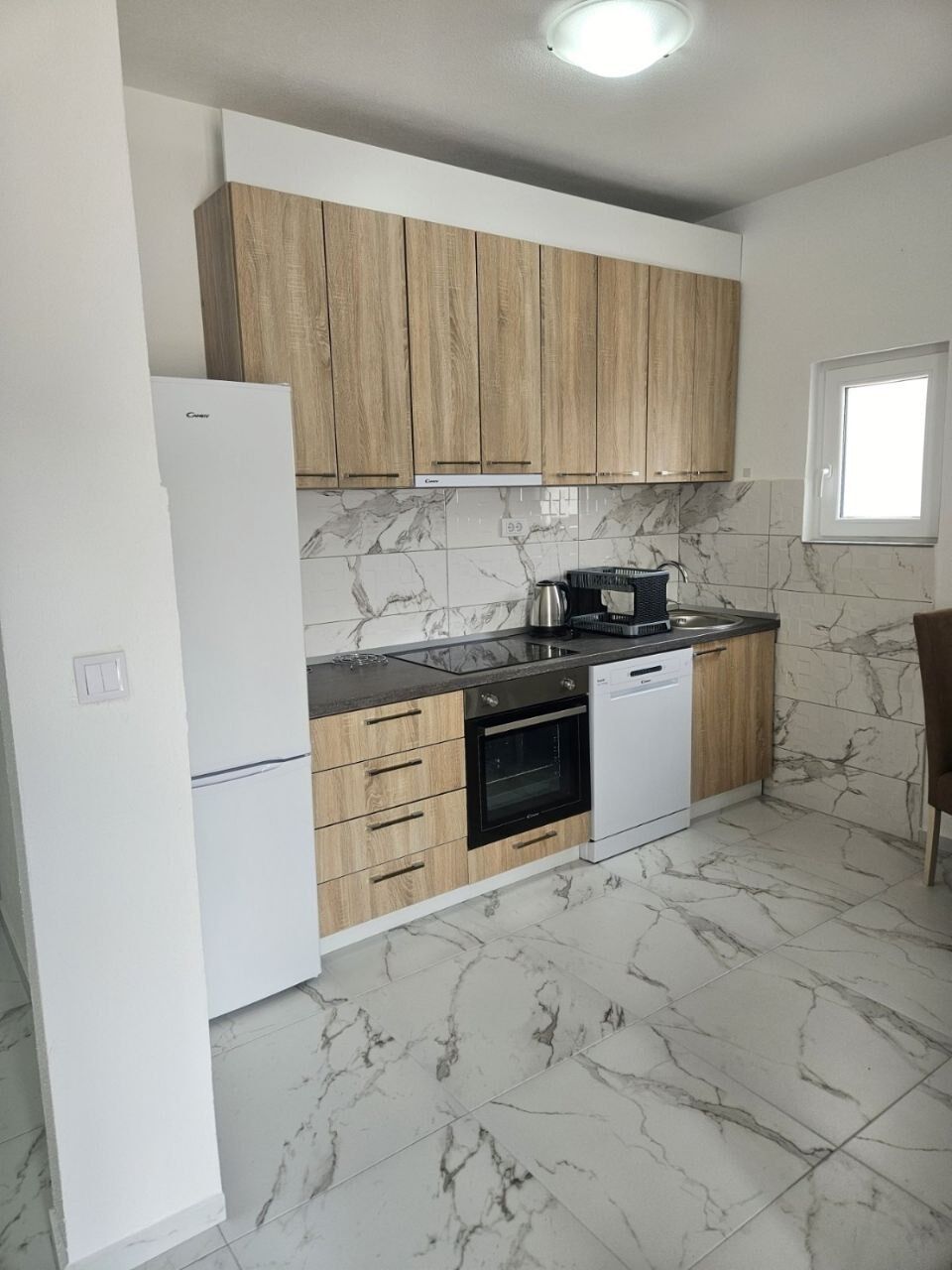 ☀️ Сдается на год квартира с 1 спальней для одного-двух человек. 📍Поповичи 💶 Цена: 450+ку Условия оплаты: первый, последний месяц + депозит • Площадь: 50м² • Этаж: 1 в частном доме • Структура: прихожая, большая гостиная с выделенной зоной кухни, санузел и 2 террасы ✅ Полностью меблирована и оборудована техникой ✅ Посудомоечная машина, большой холодильник, духовка, вытяжка ✅ Стиральная машина, полноценный бойлер, кондиционер 🏡 Ухоженная придомовая территория 🚘 Приватный паркинг 🚫 Проживание без питомцев 📍Хорошая локация – до центра ~10 минут пешком, в шаговой доступности пекарня, супермаркет "Идея" 📱Контакт: +38268115701/ +38268675470