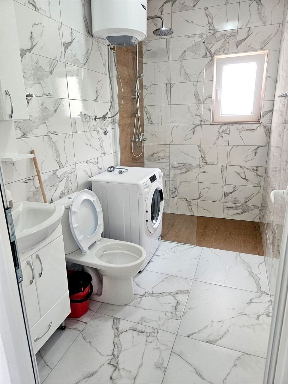 ☀️ Сдается на год квартира с 1 спальней для одного-двух человек. 📍Поповичи 💶 Цена: 450+ку Условия оплаты: первый, последний месяц + депозит • Площадь: 50м² • Этаж: 1 в частном доме • Структура: прихожая, большая гостиная с выделенной зоной кухни, санузел и 2 террасы ✅ Полностью меблирована и оборудована техникой ✅ Посудомоечная машина, большой холодильник, духовка, вытяжка ✅ Стиральная машина, полноценный бойлер, кондиционер 🏡 Ухоженная придомовая территория 🚘 Приватный паркинг 🚫 Проживание без питомцев 📍Хорошая локация – до центра ~10 минут пешком, в шаговой доступности пекарня, супермаркет "Идея" 📱Контакт: +38268115701/ +38268675470