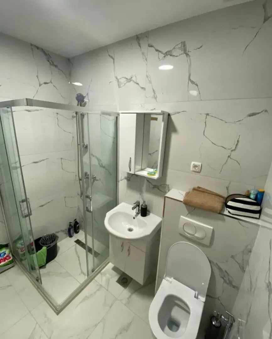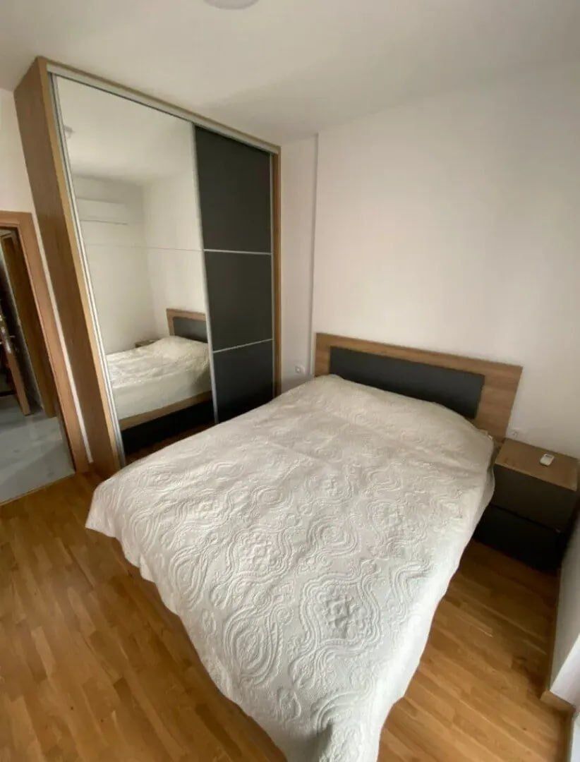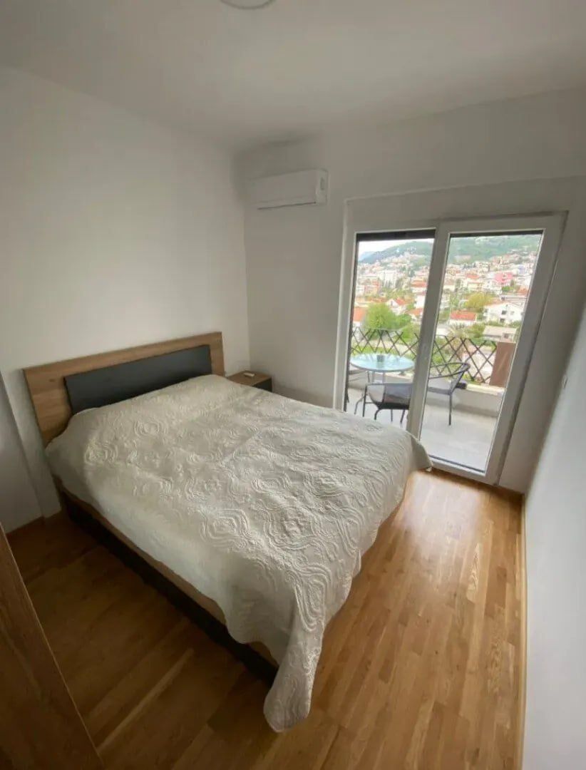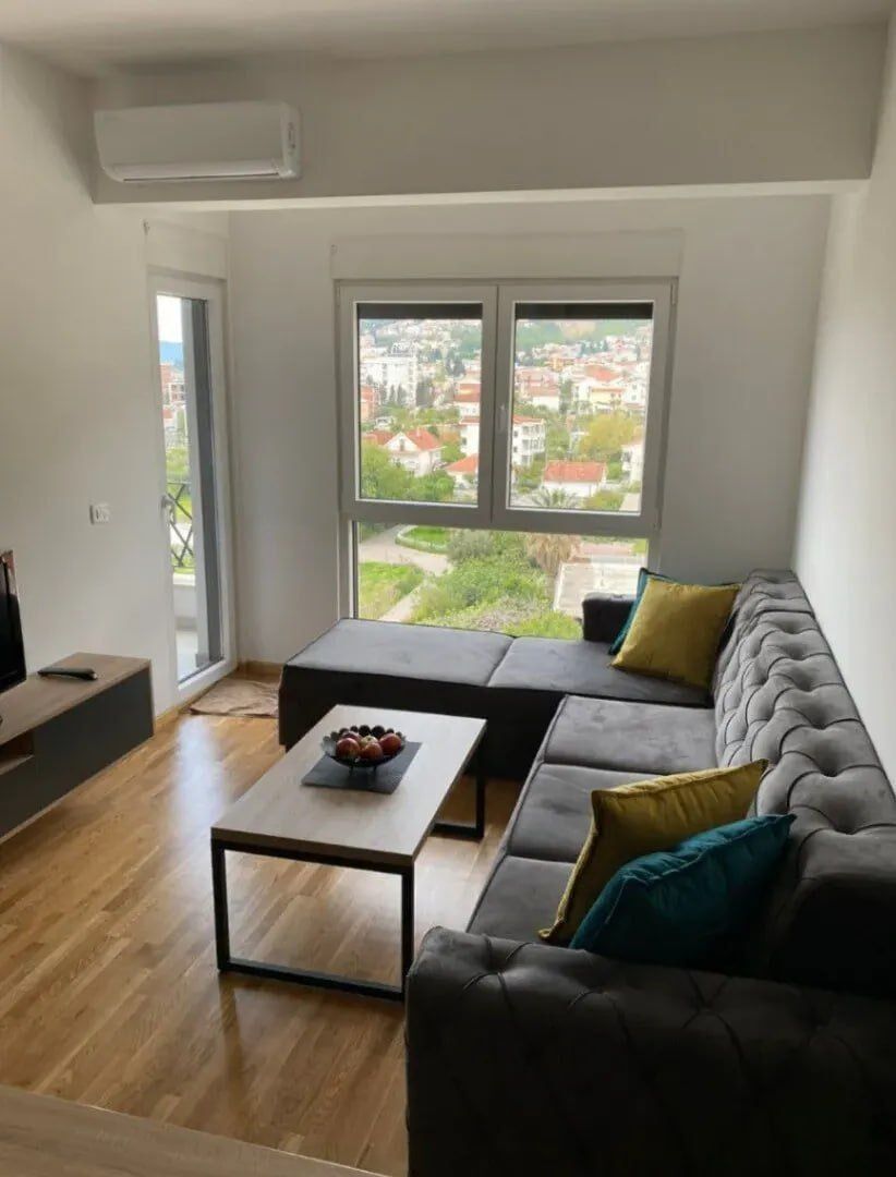 Бар, район Илино. Сдаётся новая квартира с одной спальней, доступна для аренды до 1 июня. Квартира площадью 42 м² расположена на пятом этаже здания с лифтом. Планировка включает гостиную с кухонной зоной, спальню, санузел и террасу. Квартира полностью меблирована и оборудована современной бытовой техникой: вытяжка, духовой шкаф, полноразмерный холодильник. На территории предусмотрен приватный паркинг. Проживание с животными не допускается. В шаговой доступности находятся магазины и рестораны, расстояние до набережной — около 600 метров.