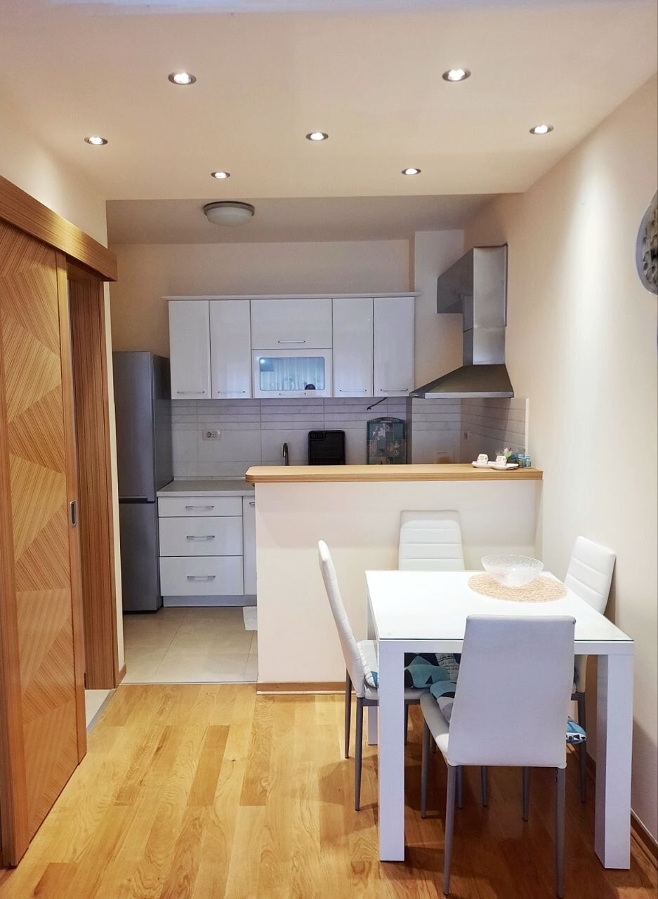 🌊 ZETAGRADNJA. Годовая аренда квартиры с 1 спальней. * доступна с 15 декабря 💶 Цена: 550€+ку Оплата за первый, последний месяц и депозит Площадь: 45м² Этаж: 2 Структура: прихожая, гостиная, кухня, спальня, санузел и терраса 🛋 Полностью меблирована и укомплектована техникой 🍽 Посудомоечная машина, духовка, вытяжка, полноразмерный холодильник 🛁 В ванной полноценный бойлер, полотенцесушитель, стиральная машина 🚫 Без питомцев 📲 Контакт: +38268675470/ +38268115701