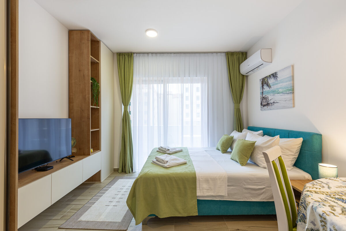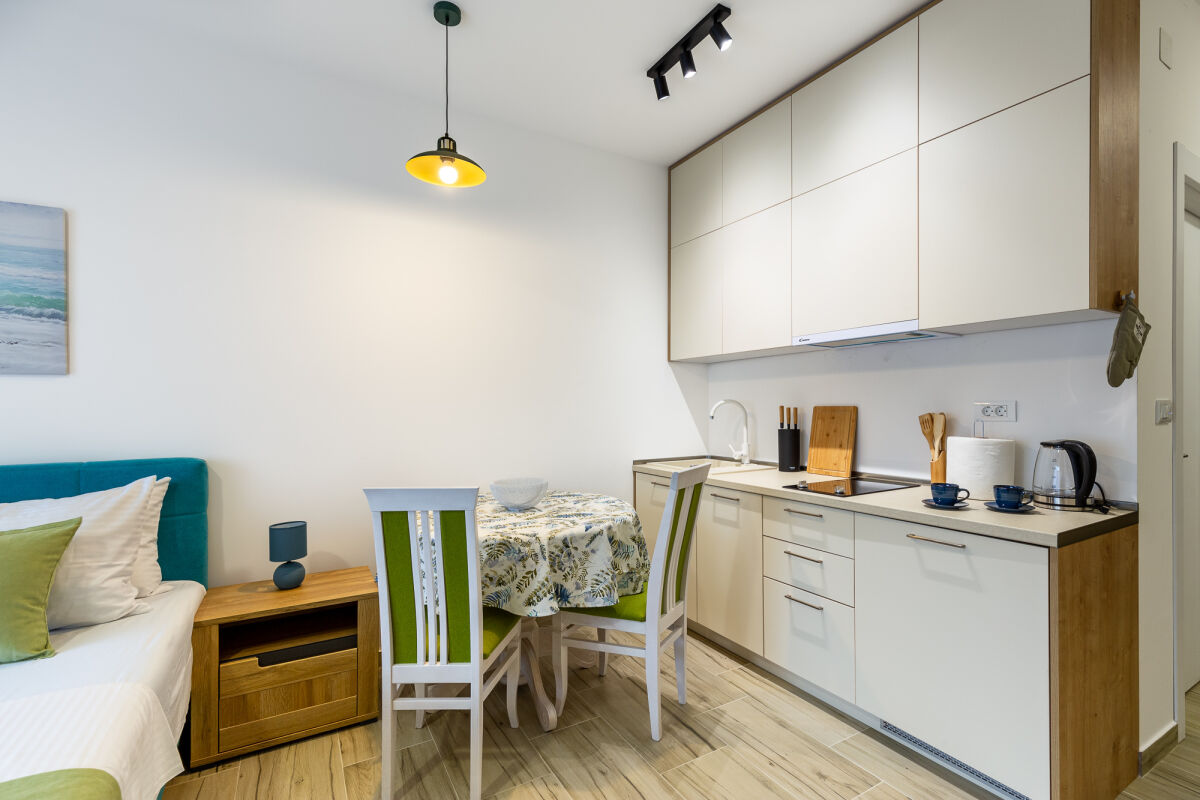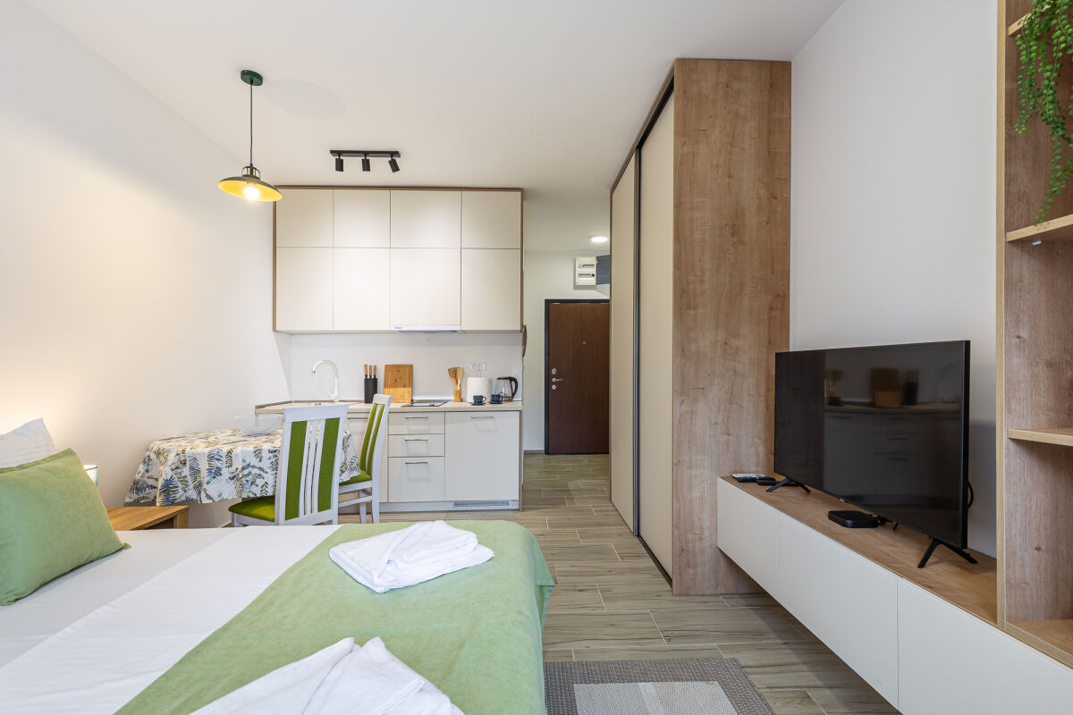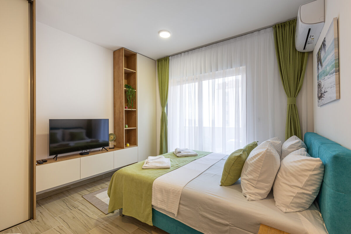Студия-апартамент в Бечичах — идеальный выбор для тех, кто хочет комфортное и современное жилье рядом с морем. Этот тип апартаментов обычно отличается функциональным пространством, которое сочетает в себе гостиную, спальную зону и кухонный уголок в одной комнате, что максимально использует доступное пространство. Возможность гостиничного обслуживания за дополнительные 200€.