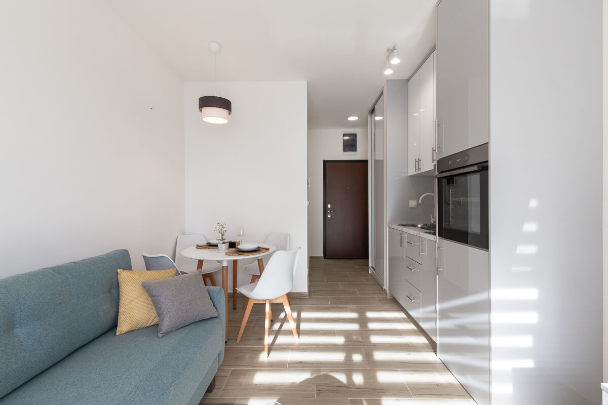 Студия-апартамент в Бечичах — идеальный выбор для тех, кто хочет комфортное и современное жилье рядом с морем. Этот тип апартаментов обычно отличается функциональным пространством, которое сочетает в себе гостиную, спальную зону и кухонный уголок в одной комнате, что максимально использует доступное пространство. Возможность гостиничного обслуживания за дополнительные 200€.