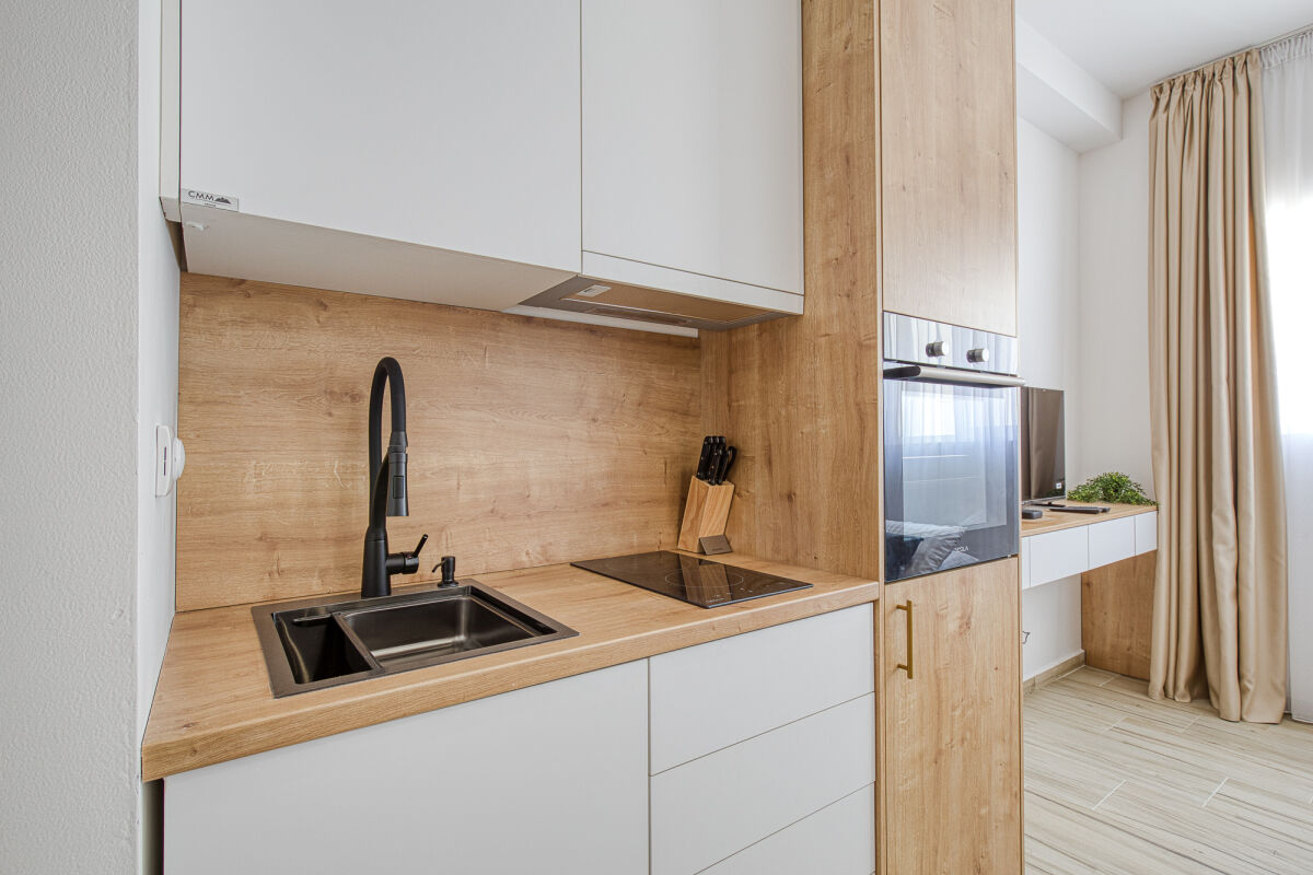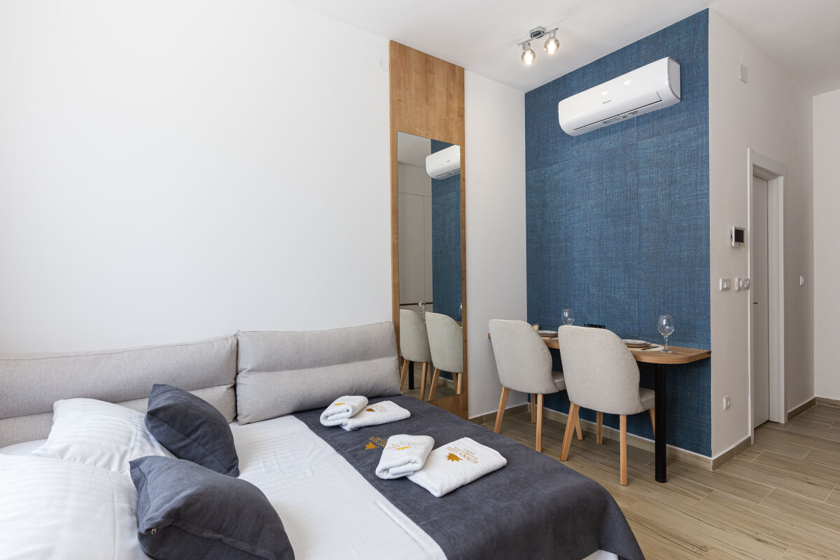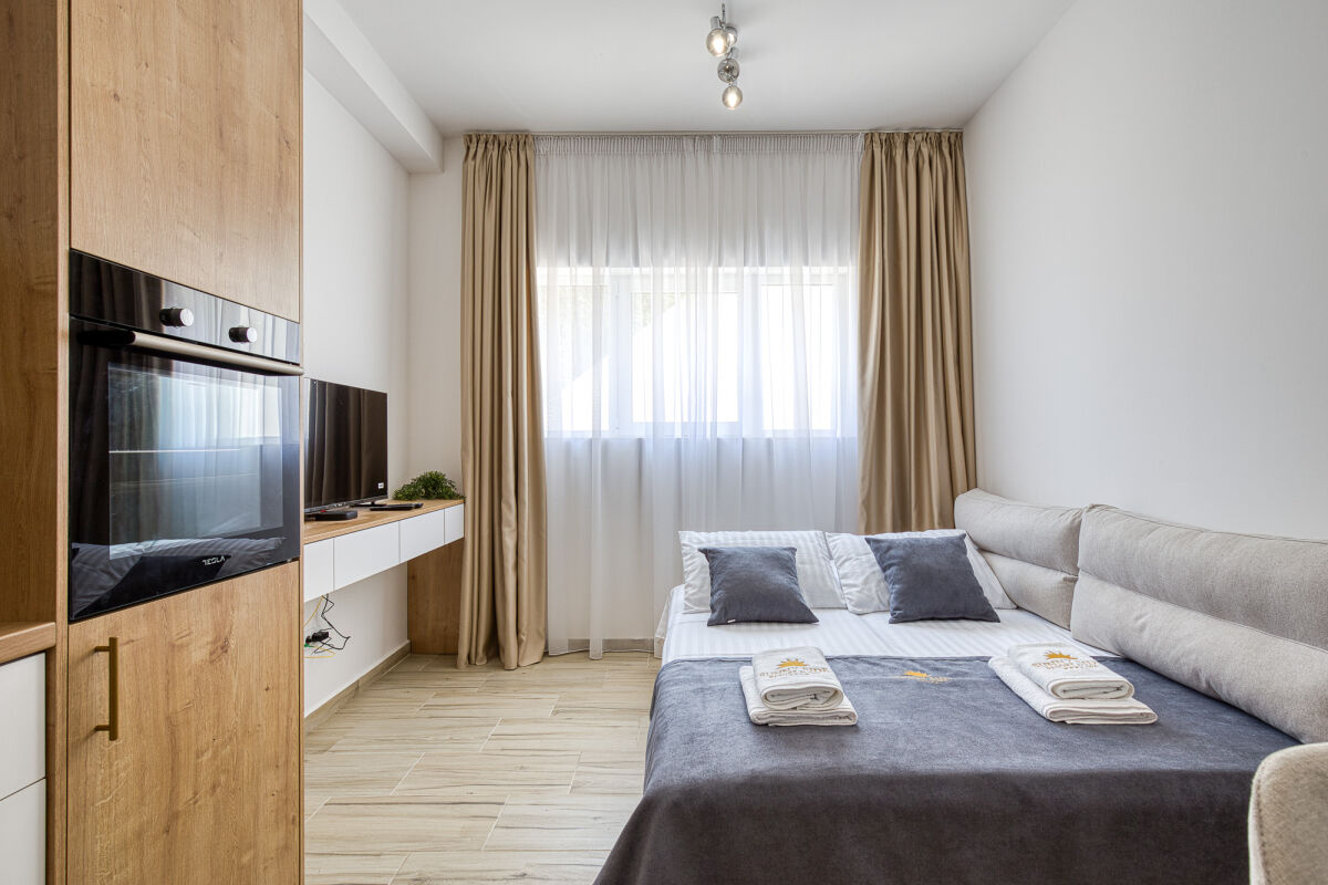 Студия-апартамент в Бечичах — идеальный выбор для тех, кто хочет комфортное и современное жилье рядом с морем. Этот тип апартаментов обычно отличается функциональным пространством, которое сочетает в себе гостиную, спальную зону и кухонный уголок в одной комнате, что максимально использует доступное пространство. Возможность гостиничного обслуживания за дополнительные 200€.