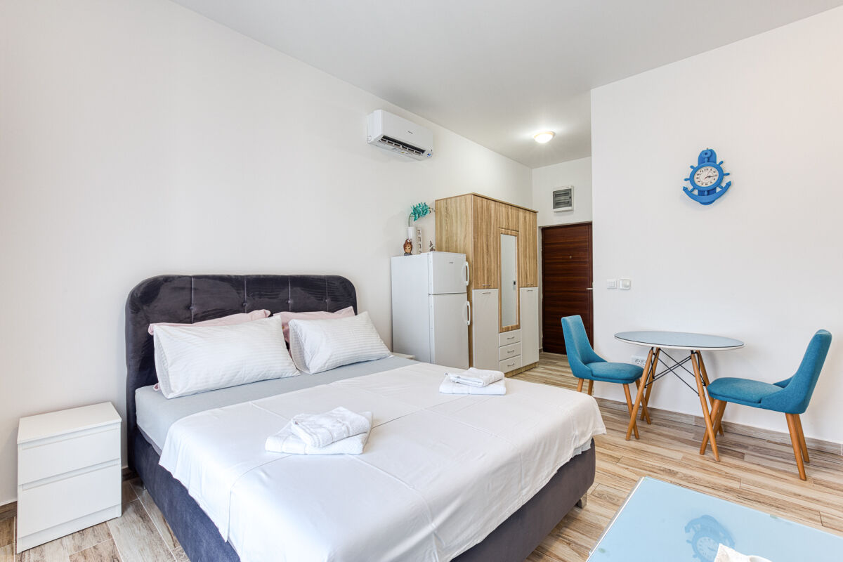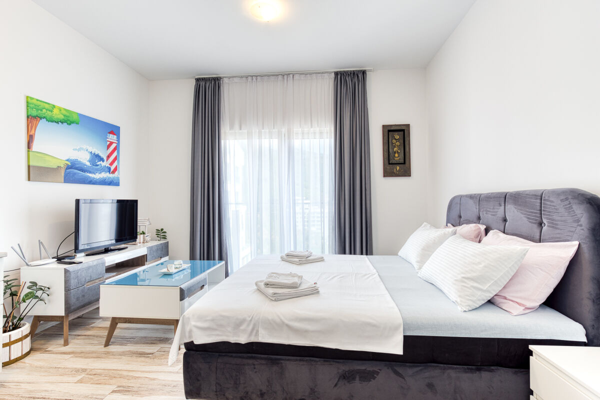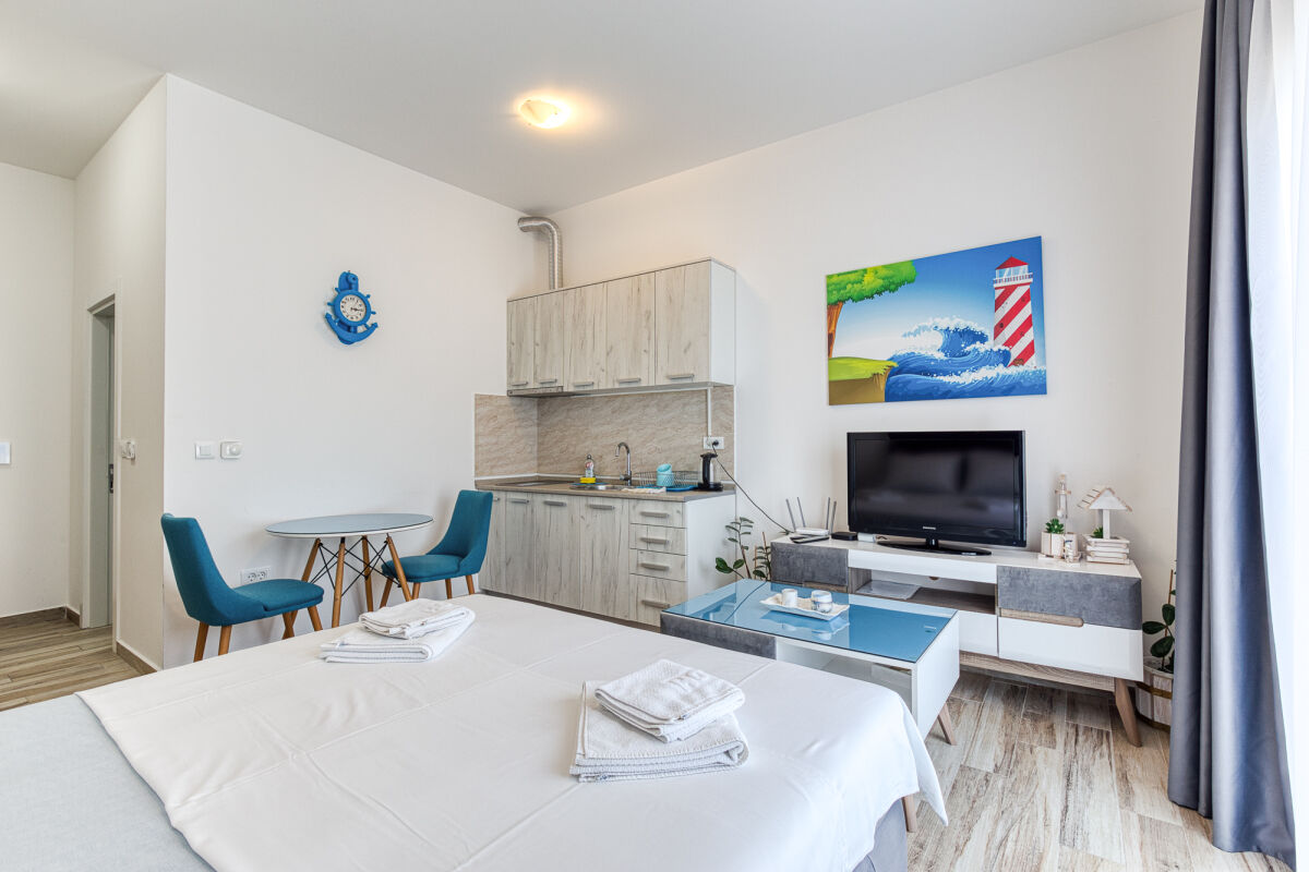 Студия-апартамент в Бечичах — идеальный выбор для тех, кто хочет комфортное и современное жилье рядом с морем. Этот тип апартаментов обычно отличается функциональным пространством, которое сочетает в себе гостиную, спальную зону и кухонный уголок в одной комнате, что максимально использует доступное пространство. Возможность гостиничного обслуживания за дополнительные 100€.