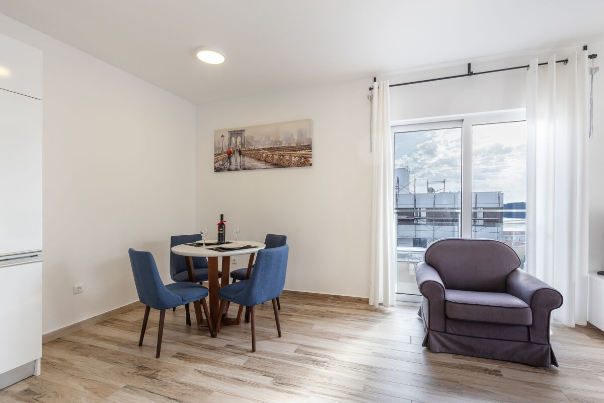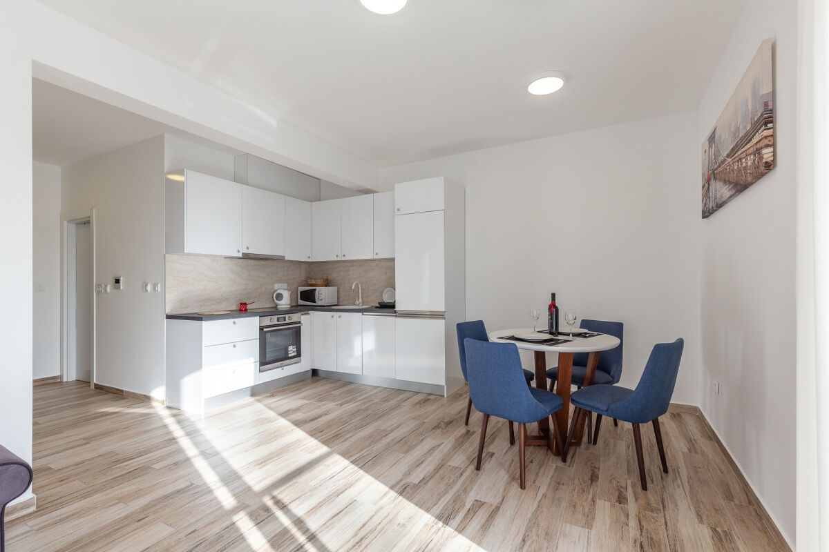 Сдается однокомнатная, современно оборудованная квартира в роскошном комплексе Sunny Side Wellness & Spa Resort в Бечичах. Квартира полностью меблирована и оборудована для комфортного проживания, с современным интерьером, кухней, кондиционером, быстрым интернетом. Жителям доступно полное предложение курорта, включая спа-центр, бассейн, тренажерный зал, а также рецепцию. За дополнительные 150€ в месяц доступна услуга гостиничного обслуживания, которая включает уборку, смену постельного белья и полотенец, что делает эту квартиру идеальной для тех, кто хочет максимального комфорта и беззаботности.