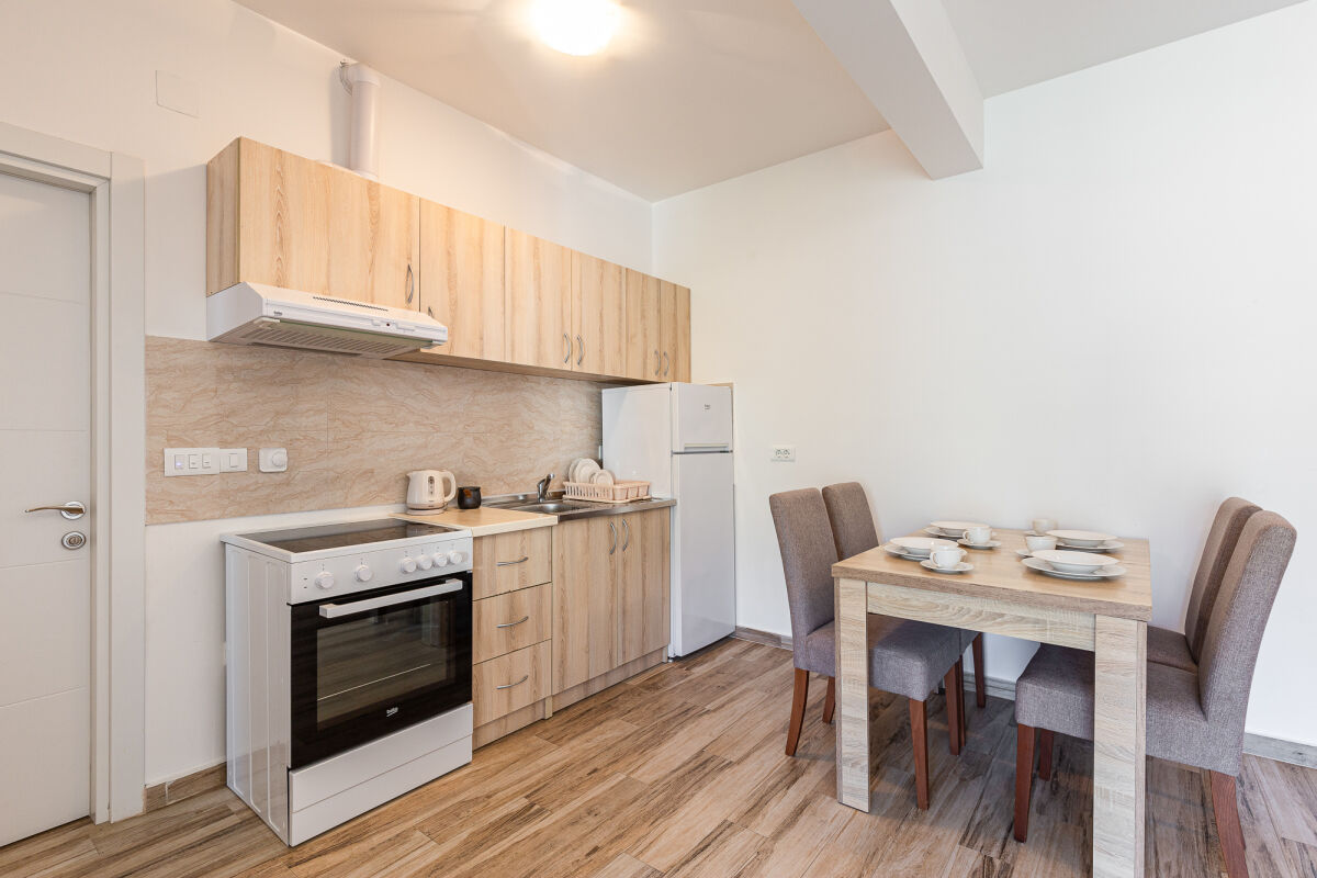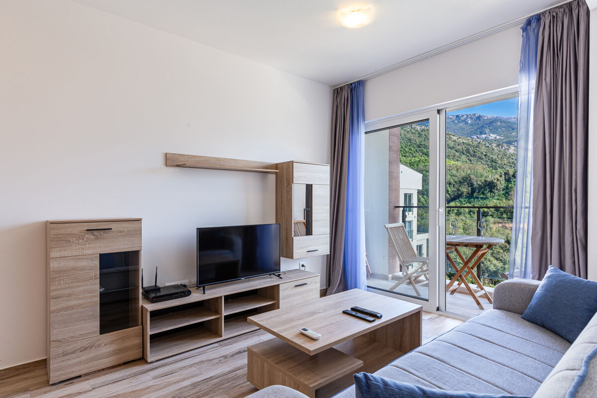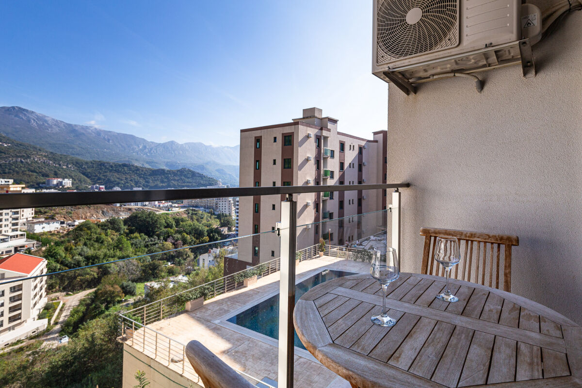 Сдается однокомнатная, современно оборудованная квартира в роскошном комплексе Sunny Side Wellness & Spa Resort в Бечичах. Квартира полностью меблирована и оборудована для комфортного проживания, с современным интерьером, кухней, кондиционером, быстрым интернетом. Жителям доступен полный спектр услуг курорта, включая спа-центр, бассейн, тренажерный зал, а также рецепцию. За дополнительные 150€ в месяц доступна услуга гостиничного обслуживания, которая включает уборку, смену постельного белья и полотенец, что делает эту квартиру идеальной для тех, кто хочет максимального комфорта и беззаботности.