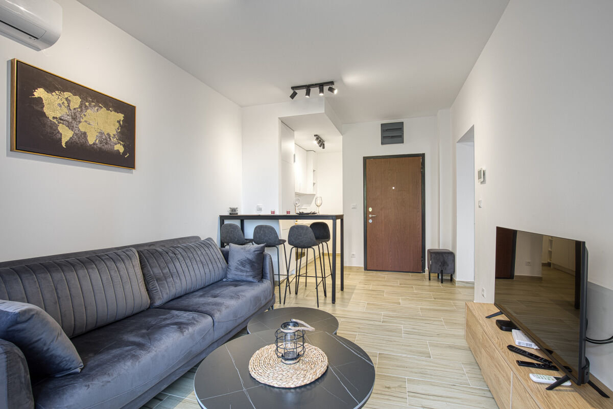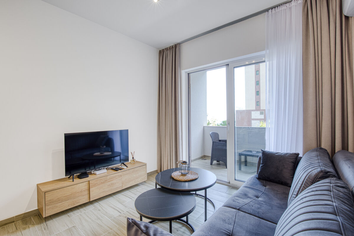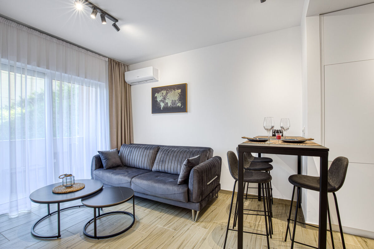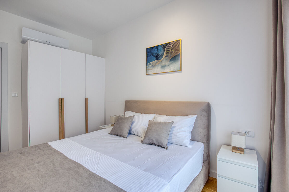 Сдается однокомнатная, современно оборудованная квартира в роскошном комплексе Sunny Side Wellness & Spa Resort в Бечичах. Квартира полностью меблирована и оборудована для комфортного проживания, с современным интерьером, кухней, кондиционером, быстрым интернетом. Жителям доступно полное предложение курорта, включая спа-центр, бассейн, тренажерный зал, а также рецепцию. За дополнительные 150€ в месяц доступна услуга гостиничного обслуживания, которая включает уборку, смену постельного белья и полотенец, что делает эту квартиру идеальной для тех, кто хочет максимального комфорта и беззаботности.