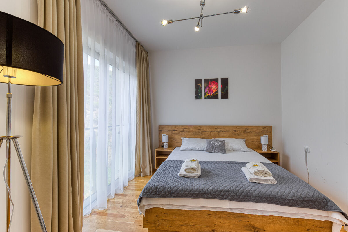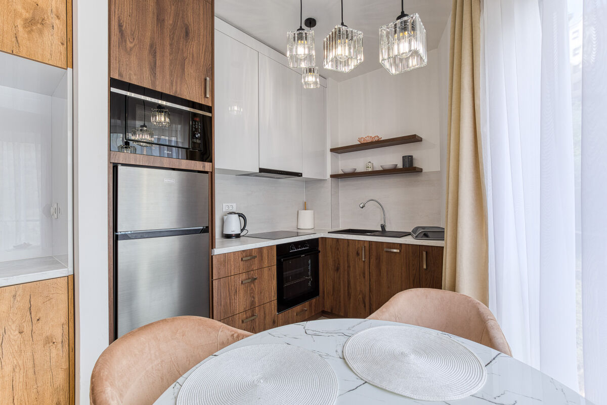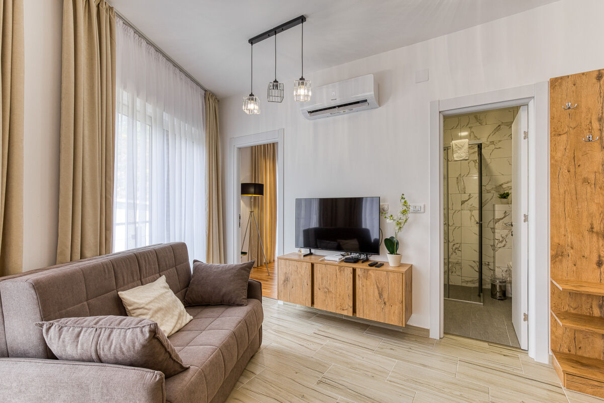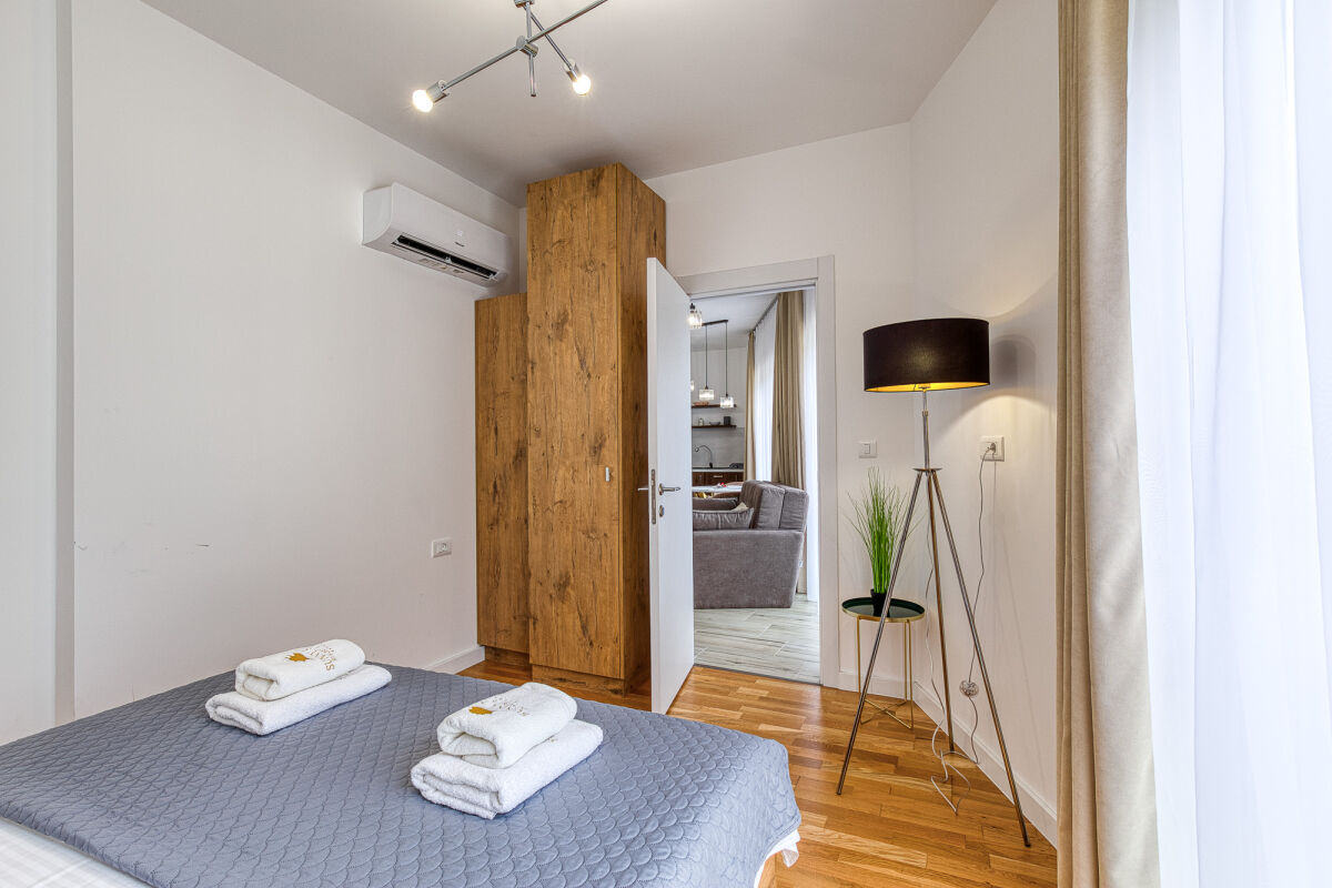 Сдается однокомнатная, современно оборудованная квартира в роскошном комплексе Sunny Side Wellness & Spa Resort в Бечичах. Квартира полностью меблирована и оборудована для комфортного проживания, с современным интерьером, кухней, кондиционером, быстрым интернетом. Жителям доступно полное предложение курорта, включая спа-центр, бассейн, тренажерный зал, а также рецепцию. За дополнительные 150€ в месяц доступна услуга гостиничного обслуживания, которая включает уборку, замену постельного белья и полотенец, что делает эту квартиру идеальной для тех, кто хочет максимального комфорта и беззаботности.