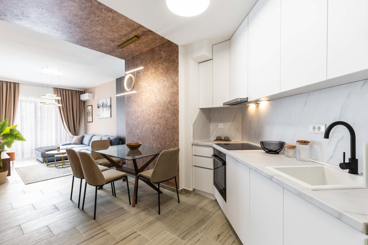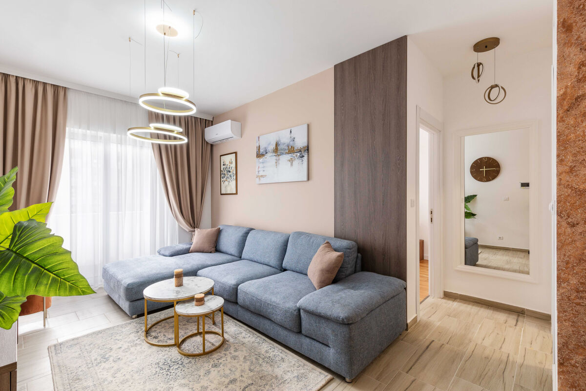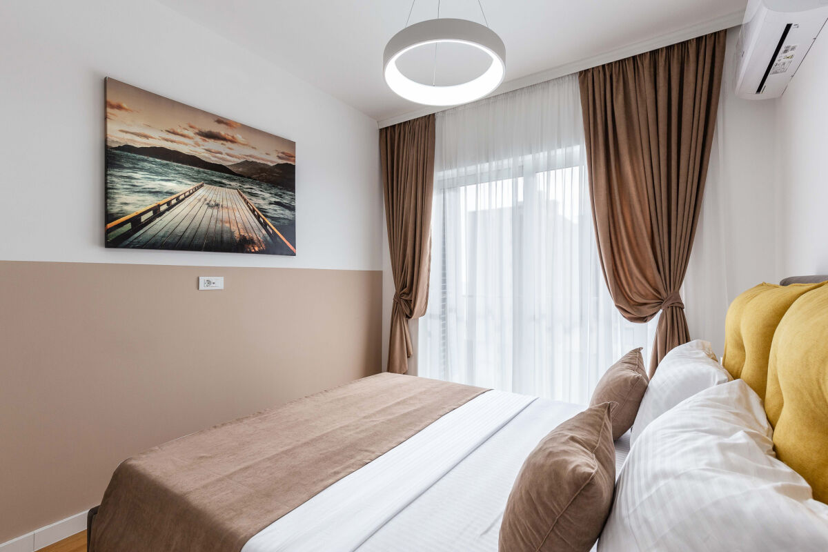 Сдается однокомнатная, современно оборудованная квартира в роскошном комплексе Sunny Side Wellness & Spa Resort в Бечичах. Квартира полностью меблирована и оборудована для комфортного проживания, с современным интерьером, кухней, кондиционером, быстрым интернетом. Жителям доступно полное предложение курорта, включая спа-центр, бассейн, тренажерный зал, а также рецепцию. За дополнительные 150€ в месяц доступна услуга гостиничного обслуживания, которая включает уборку, замену постельного белья и полотенец, что делает эту квартиру идеальной для тех, кто хочет максимального комфорта и беззаботности.