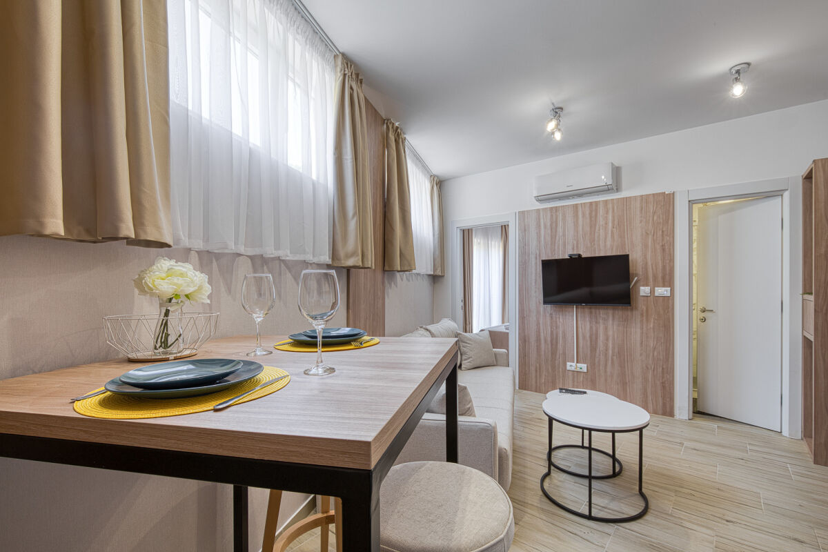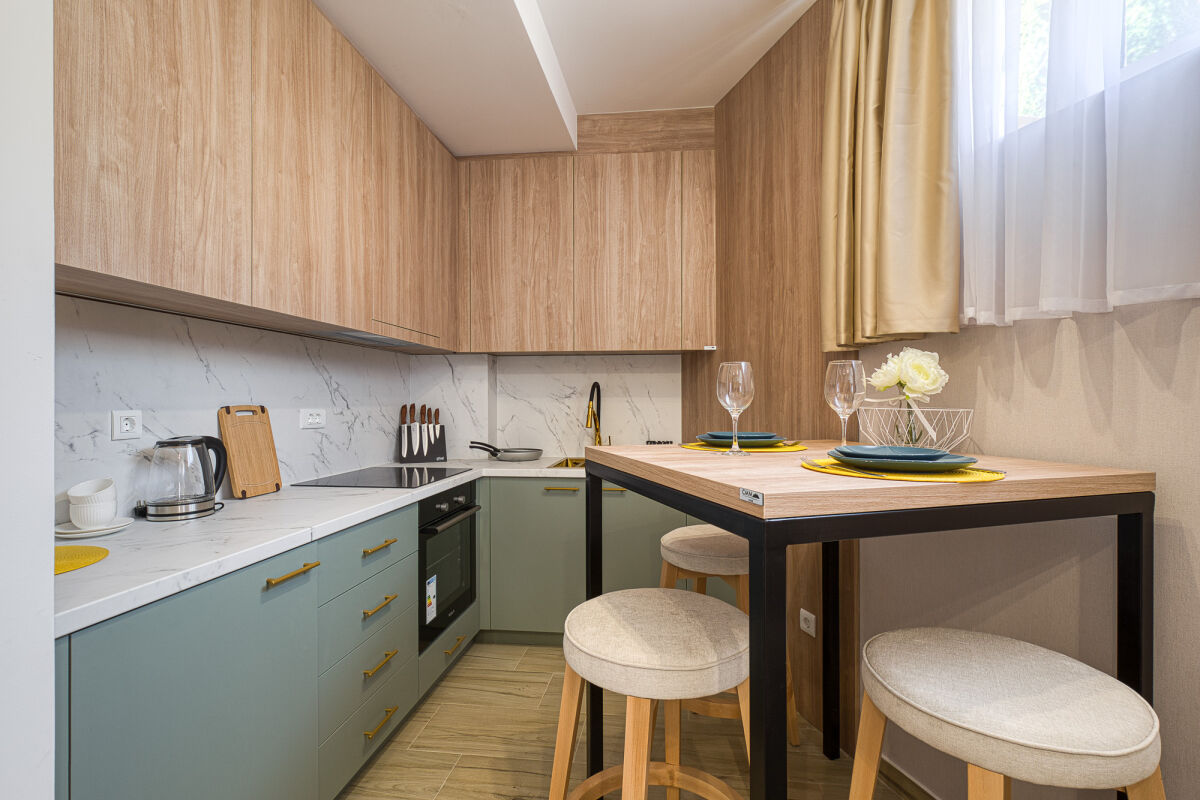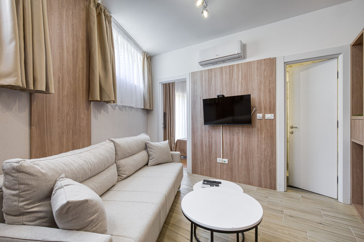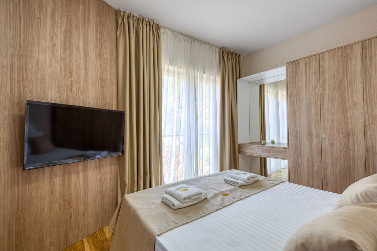 Сдается однокомнатная, современно оборудованная квартира в роскошном комплексе Sunny Side Wellness & Spa Resort в Бечичах. Квартира полностью меблирована и оборудована для комфортного проживания, с современным интерьером, кухней, кондиционером, быстрым интернетом. Жителям доступен полный спектр услуг курорта, включая спа-центр, бассейн, тренажерный зал, а также рецепцию. За дополнительные 150€ в месяц доступна услуга гостиничного обслуживания, которая включает уборку, смену постельного белья и полотенец, что делает эту квартиру идеальной для тех, кто хочет максимального комфорта и беззаботности.