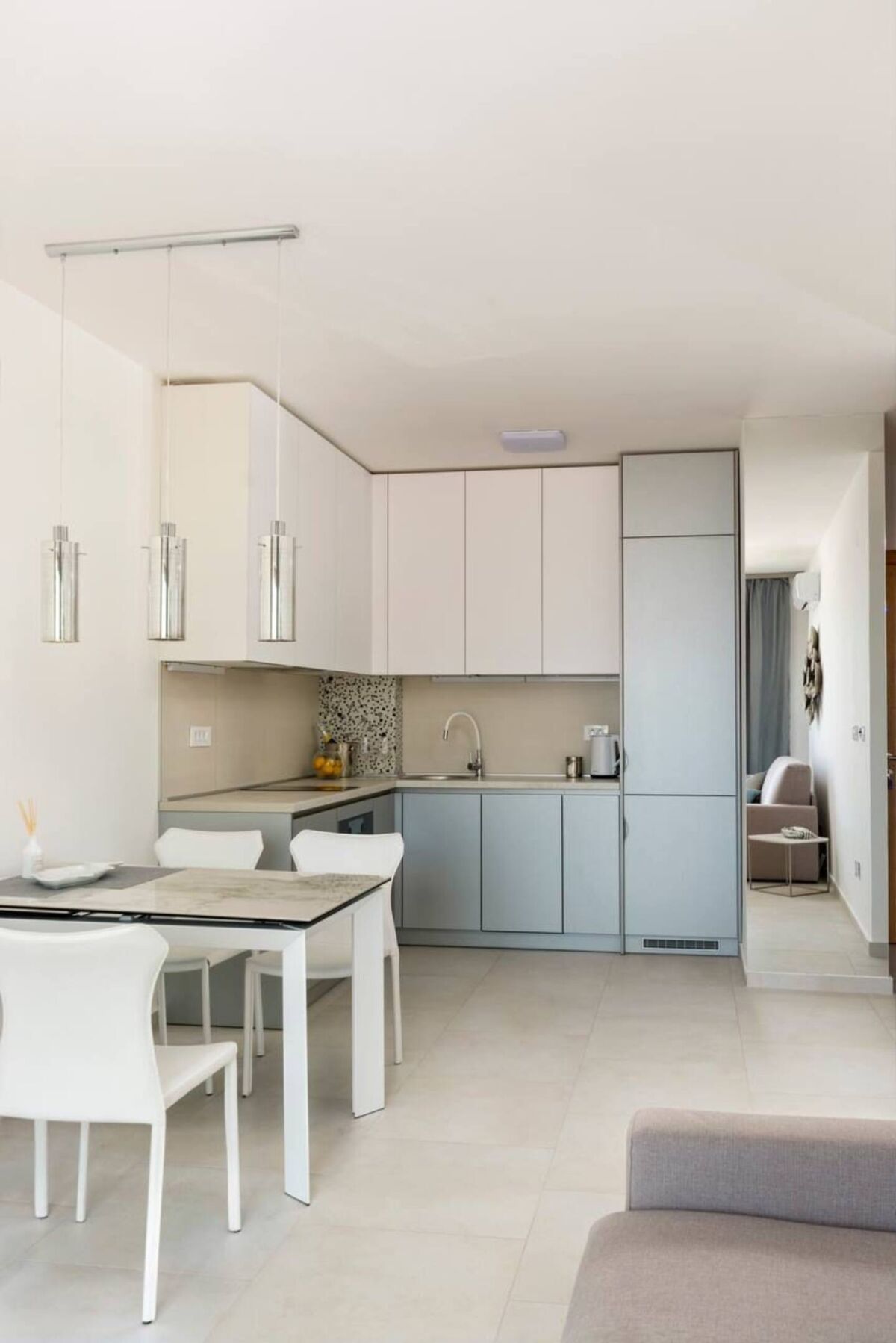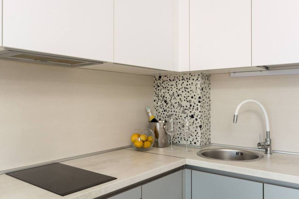 Аренда до лета. Квартира имеет 1 спальню и гостиную зону, совмещенную с кухней. Из гостиной выход на террасу с видом на море. Возможно размещение 4 персоны. Апартамент имеет чайник, стиральную машину, кондиционер, фен, утюг, гладильную доску, сушилку для белья, посудомоечную машину. В спальне — большая двуспальная кровать, вместительный шкаф. В гостиной диван на 2 персоны. На кухне — плита , духовой шкаф, посудомоечная машина, большой холодильник, набор посуды. Есть кондиционер, телевидение, интернет, стиральная машина. До моря до 5-7 минут пешком. В 5 минутах большой супермаркет, аптека, в 2-3 минутах ходьбы не большие магазины, лавки с фруктами.