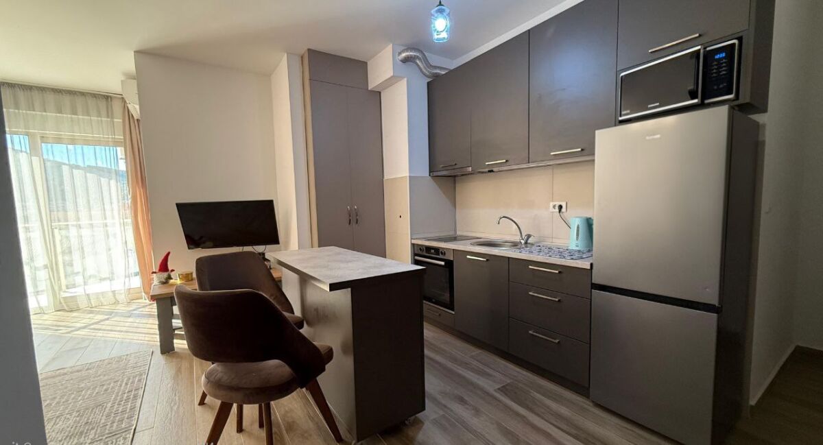 Годовая аренда в центре Будве: * Новый дом, район заправки Eko * 7 минут пешком до пляжа * 5 этаж, есть лифт Светлая и солнечная квартира: - Прихожая - Кухня с гостиной - Спальня - Ванная комната - Две террасы с видом на Будву и горы Оснащение: плита, духовка, микроволновка, стиральная машина Стоимость аренды 600 €/мес + коммунальные услуги. Условия: три платежа при заселении.