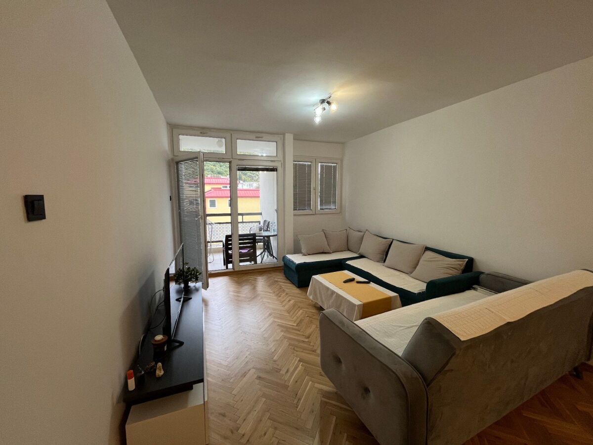Сдается просторная однокомнатная квартира в отличном районе Будвы – Бабилония (за отелем Slavija). Квартира расположена на первом этаже жилого дома и имеет общую площадь 52 м². Полностью отремонтирована в 2023 году, современно обставлена новой и качественной мебелью и техникой, готова к заселению без дополнительных вложений. Планировка включает просторную гостиную с кухней и обеденной зоной, отдельную спальню, ванную комнату и террасу, что делает квартиру очень функциональной и удобной для повседневного проживания. Район является одним из самых востребованных в Будве. В непосредственной близости находятся магазины, рестораны, детский сад и школа. Расстояние до моря — всего 350 метров, что обеспечивает быстрый и удобный доступ к пляжу и набережной. Условия аренды: долгосрочная аренда, оплата двух месяцев вперед (первый и последний месяц) и один депозит.