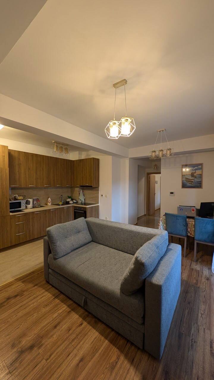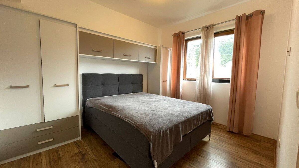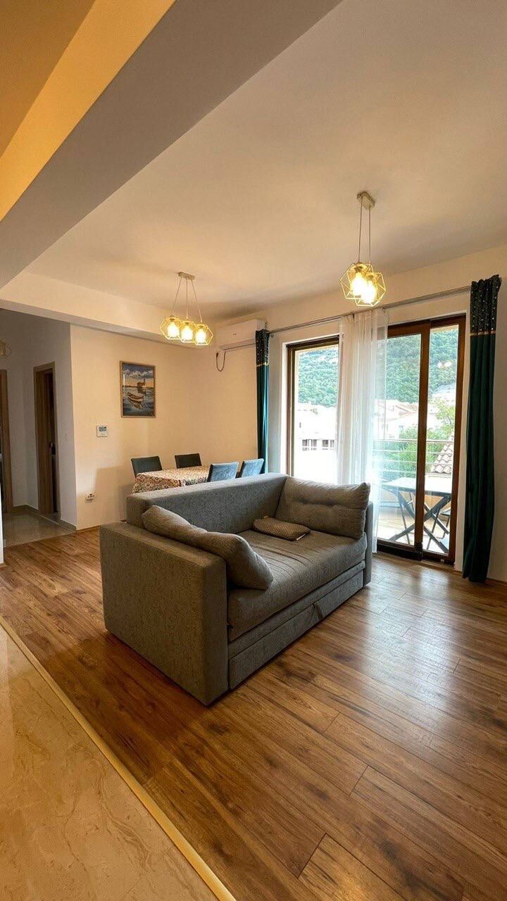Сдаётся на год квартира с 1 спальней с видом на горы в Будве вблизи ресторана Zlatibor. Квартира расположена в новом двухэтажном здании, на втором этаже, здание оборудовано лифтом. До моря — 700 метров, до центра города — примерно 15 минут пешком. В непосредственной близости находятся новая школа, кафе, пиццерия, магазины и аптека. Площадь квартиры — 47 м². Она состоит из: * гостиной с кухней, * спальни, * ванной комнаты, * террасы с видом на горы. Улица тихая, тупиковая, без движения под окнами. Кухня полностью оборудована: холодильник, посудомоечная машина, микроволновка, плита и духовка. В ванной комнате установлено подогрев пола, подключён интернет. Квартира идеально подходит для пары или небольшой семьи (2+1). Условия аренды: оплата первого и последнего месяцев + депозит.
