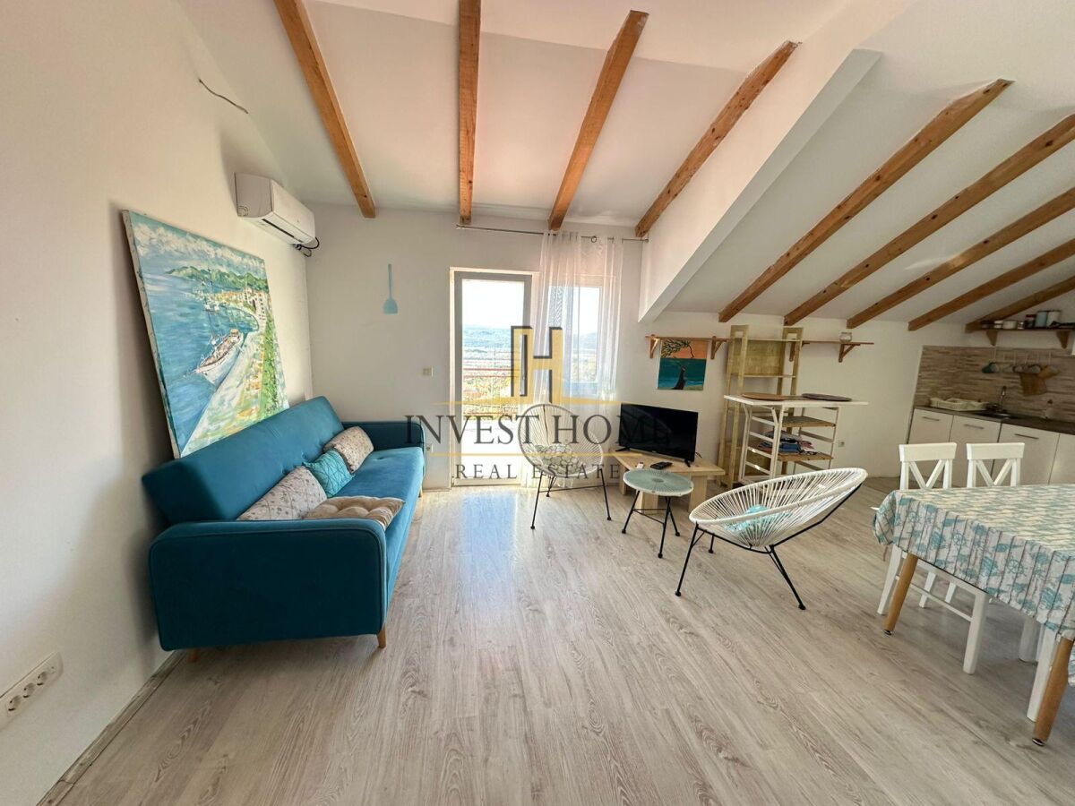 Для сдачи однокомнатная квартира в Которе, площадью 57м2. Квартира находится на этаже дома с отдельным входом. Структура квартиры: гостиная с кухней и столовой, спальня, коридор, ванная, терраса. Находится недалеко от всех городских удобств. Имеется парковочное место.