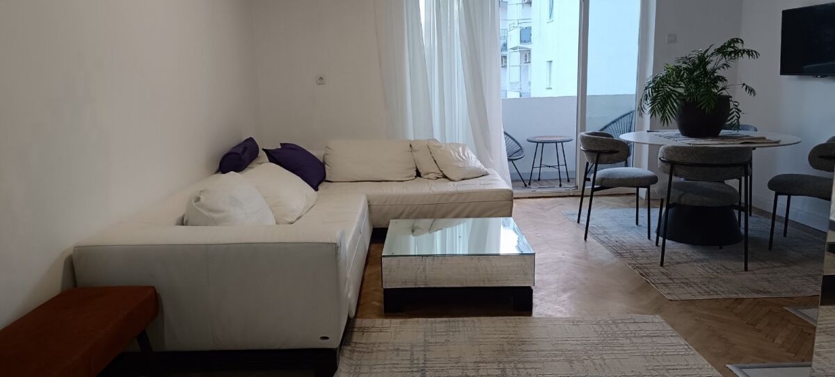 Двухкомнатная квартира в аренду на Преко Мораче. Квартира отремонтирована, есть 2 террасы. Она расположена на 2-м этаже в здании без лифта. Площадь 70м2. Находится рядом с Пиццерией Веном.