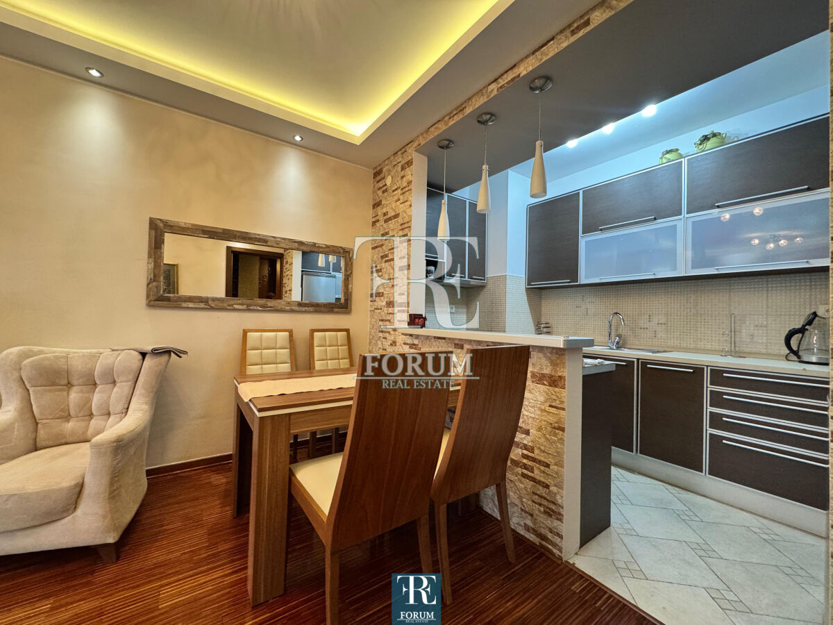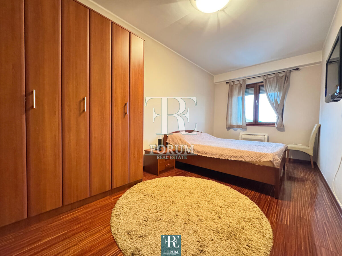 A nicely furnished and modernly equipped two bedroom apartment for rent in an excellent location in the village of Gorica C. The apartment has an area of 76 m² and is located on the third floor of a building with an elevator. It consists of an entrance hall, a spacious living room with a kitchen and dining room, two bedrooms, a bathroom, a storage room and a large terrace ideal for relaxing. The apartment is air-conditioned through a multi-split system, which provides maximum comfort throughout the year. It has its own parking space.