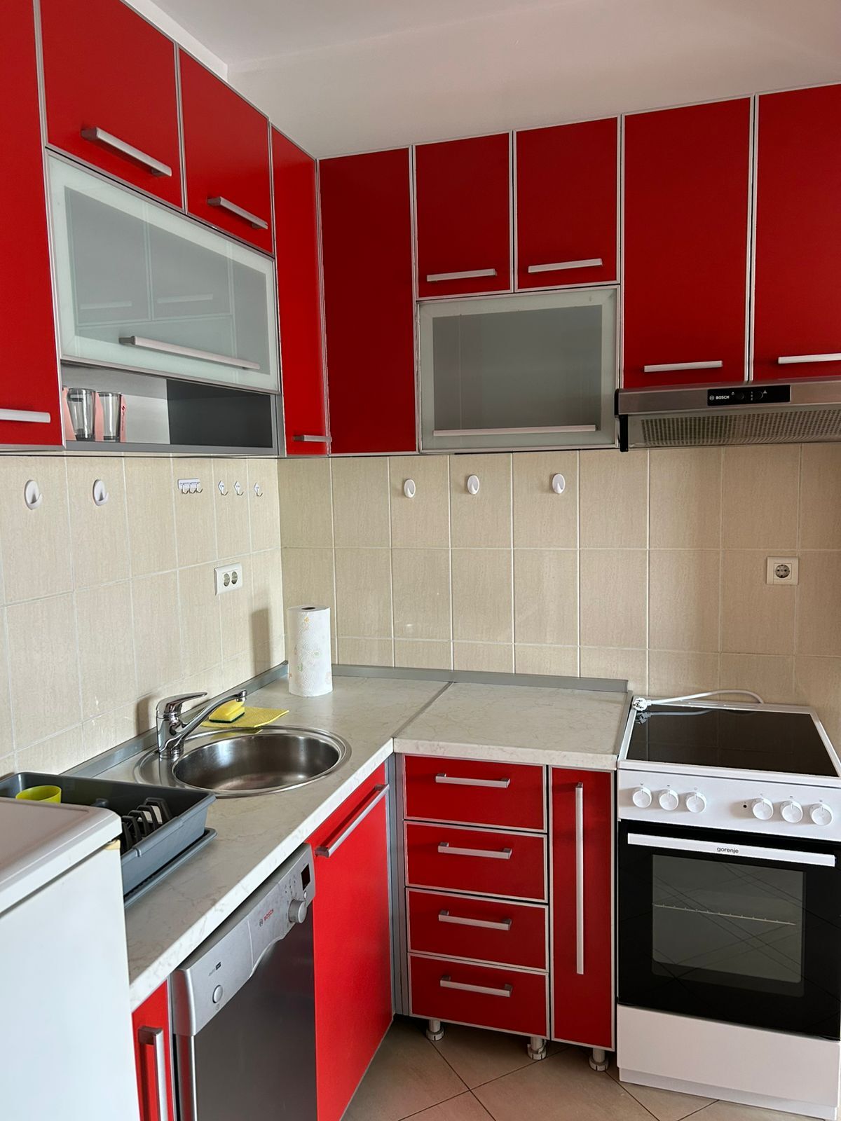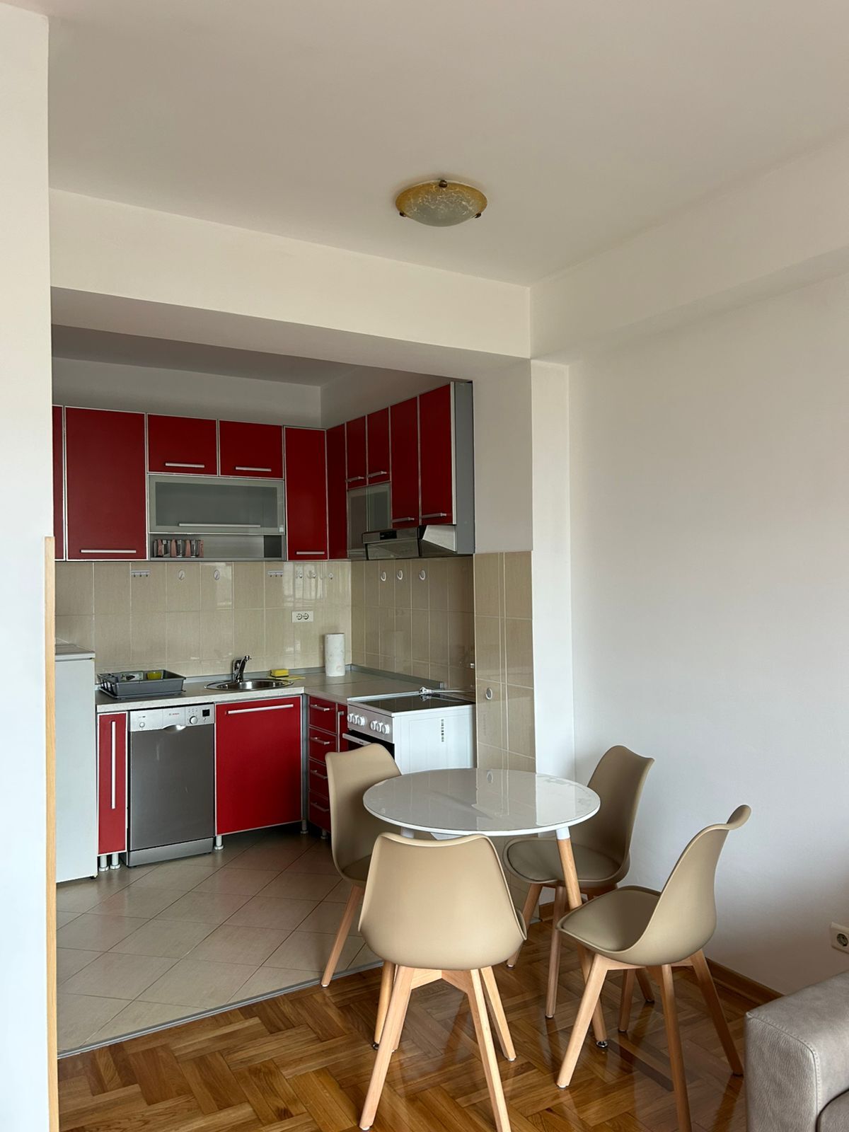 Однокомнатная меблированная квартира 43м2 в аренду, Преко Мораче, с прекрасным видом на Храм Воскресения. Квартира современно оформлена, светлая и функциональная. Она состоит из гостиной с кухней и столовой, спальни, ванной комнаты и террасы. Квартира оборудована всеми необходимыми приборами (кондиционер, телевизор, стиральная машина, холодильник, плита) и готова к заселению.