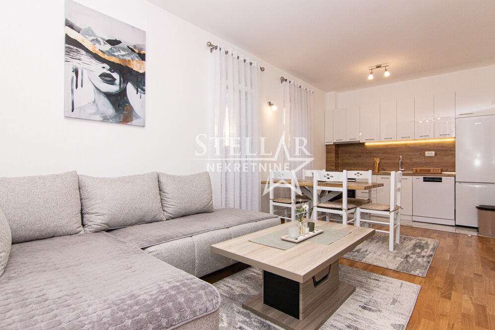 Загорич, двухкомнатная квартира на первом этаже, с парковкой. Сдается полностью оборудованная новая двухкомнатная квартира 61м2 в Загориче. Здание новое, только что заселено. Квартира находится на первом этаже в здании с лифтом. Имеет два кондиционера, один в гостиной и другой в спальне. Есть посудомоечная машина и стиральная машина. Не подходит для домашних животных. Находится вблизи начальной школы "Branko Božović". Вблизи находятся детские сады, магазины, кафе, тренажерные залы и холм Горицa. К квартире прилагается одно частное парковочное место. Сдается на длительный срок с обязательным депозитом. ID недвижимости S69 +382 69 618 445