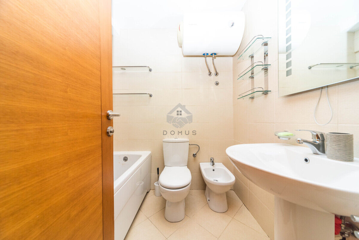 Сдается комфортабельная и современно оборудованная двухкомнатная квартира площадью 75 м² на Побрэжью. Расположена на III этаже здания Europact. Квартира состоит из просторной гостиной с столовой и кухней, двух спален – каждая с собственной ванной комнатой и террасой, коридора и дополнительного туалета. Полностью оборудована современной мебелью и бытовой техникой, кондиционирована и готова к заселению. Находится в тихом окружении, вблизи всех необходимых удобств, с обеспеченной парковкой перед зданием. Депозит в размере одной месячной аренды и контракт на год обязательны.