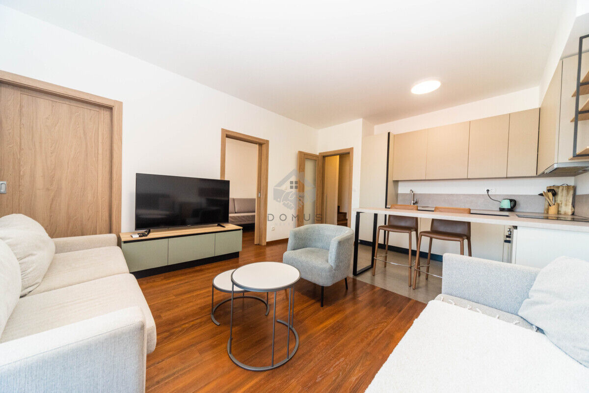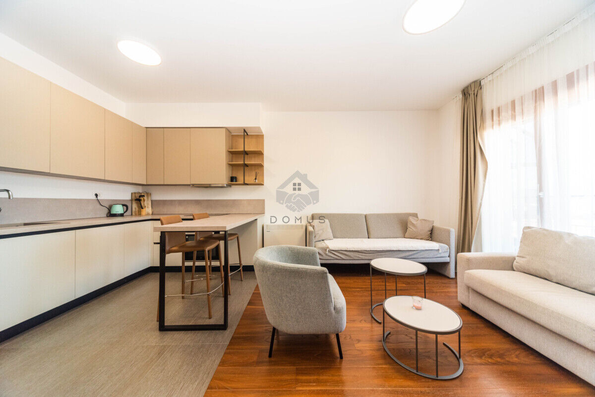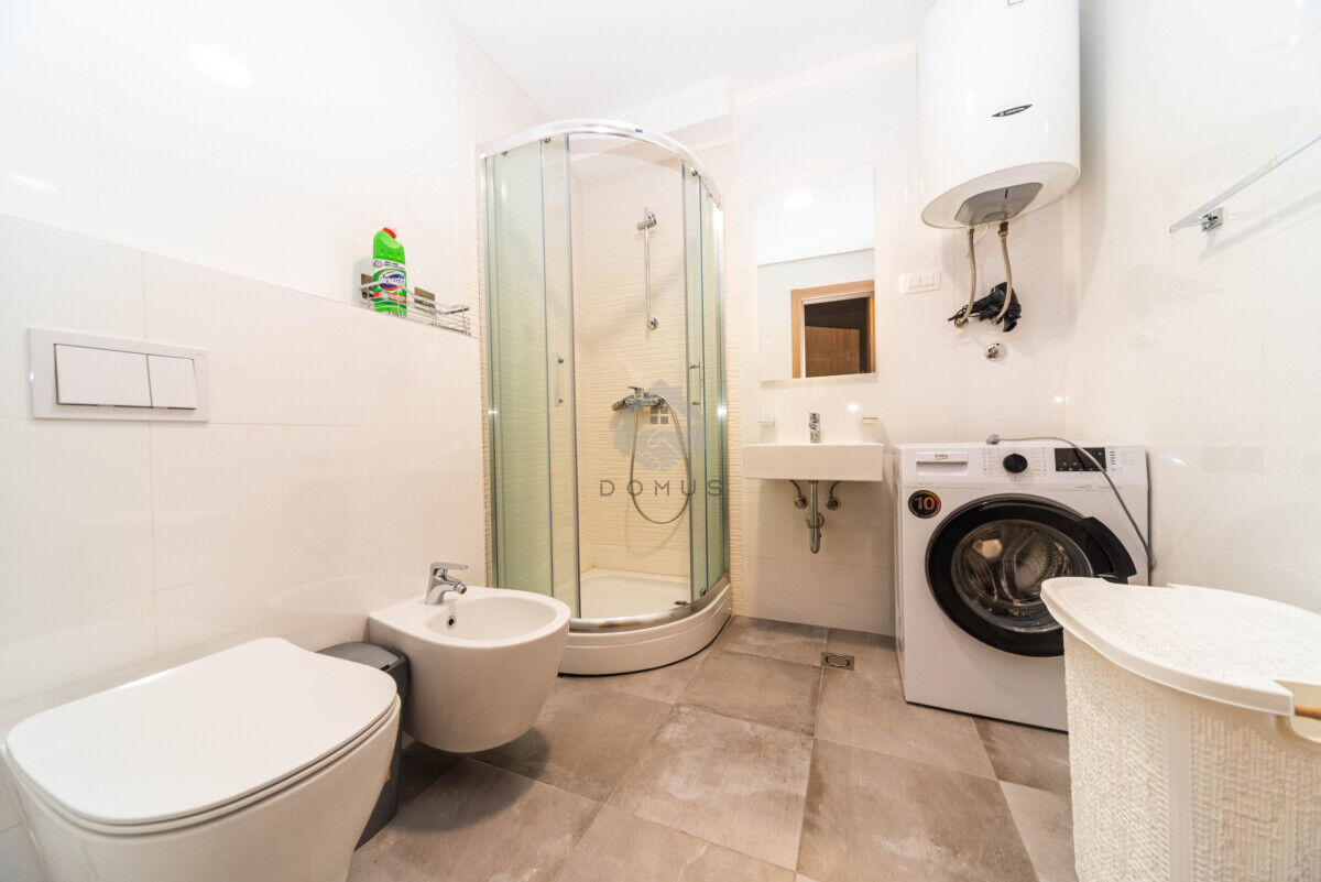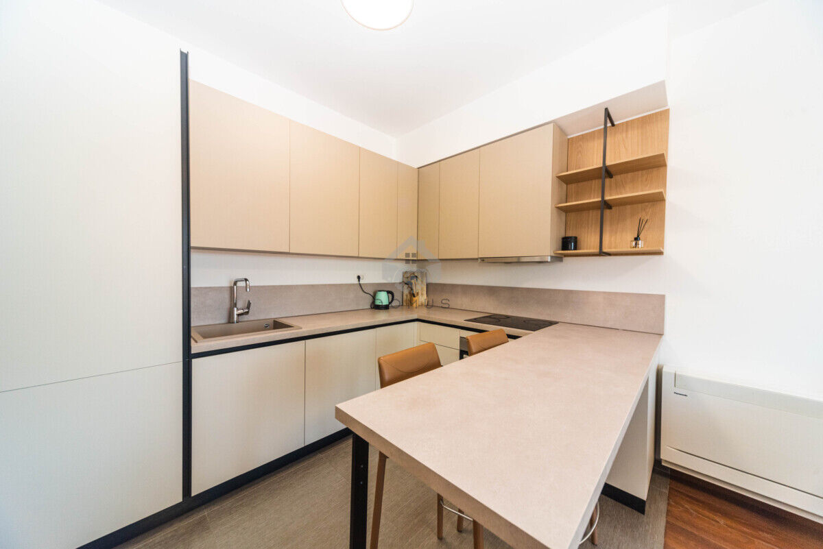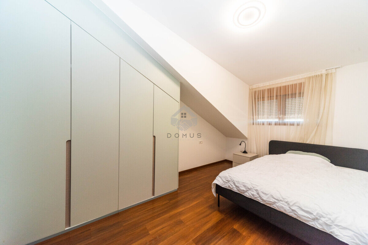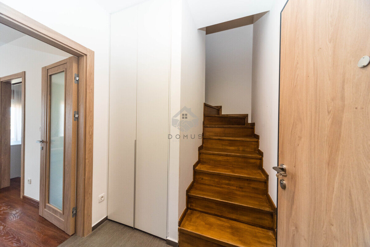 Сдается трехкомнатная дуплексная квартира площадью 89м² в Master Kvartu. Расположена на IX этаже здания Bemax. На первом уровне находятся кухня, столовая, ванная комната, одна спальня и терраса, в то время как второй уровень включает две спальни и ванную комнату. Квартира полностью меблирована современной, качественной и удобной мебелью. Она кондиционирована, исключительно комфортная и хорошо организованная. Парковка для жильцов доступна вокруг здания, в то время как гаражное место можно арендовать вместе с квартирой по цене 100 € в месяц. Локация отличная – вблизи всех важных объектов, шопинг-центров, ресторанов и бизнес-объектов. Депозит в размере одной месячной аренды и договор на длительный срок обязательны.