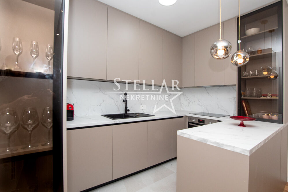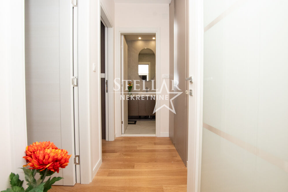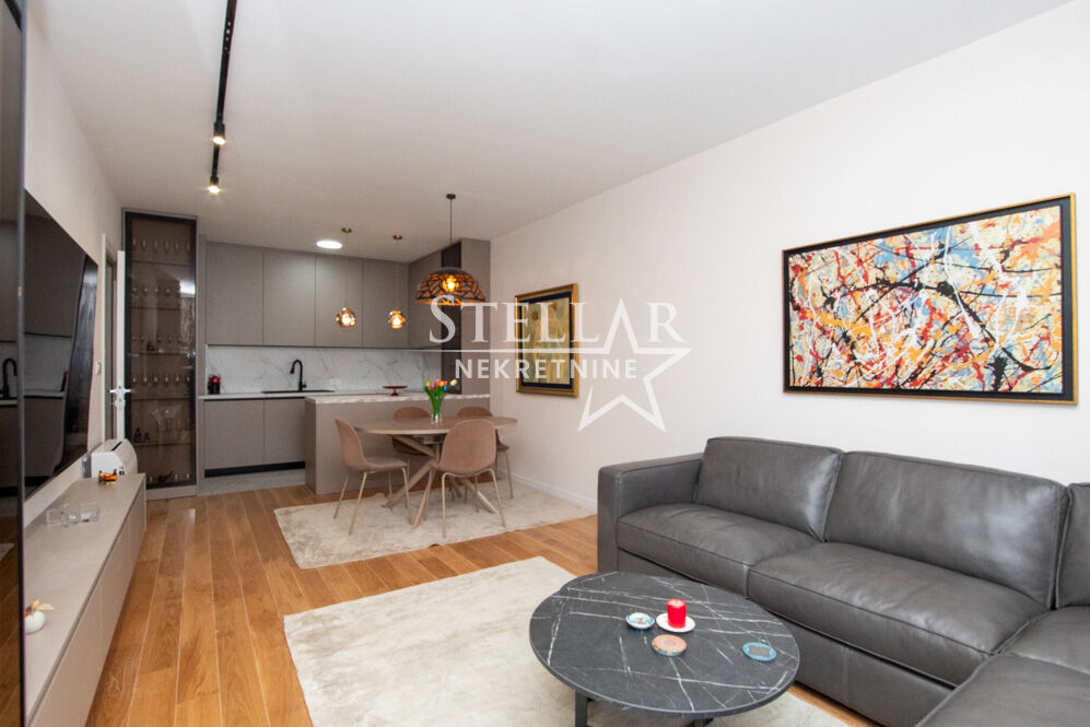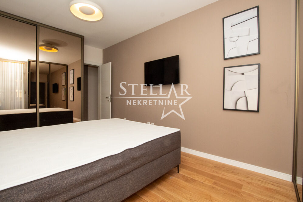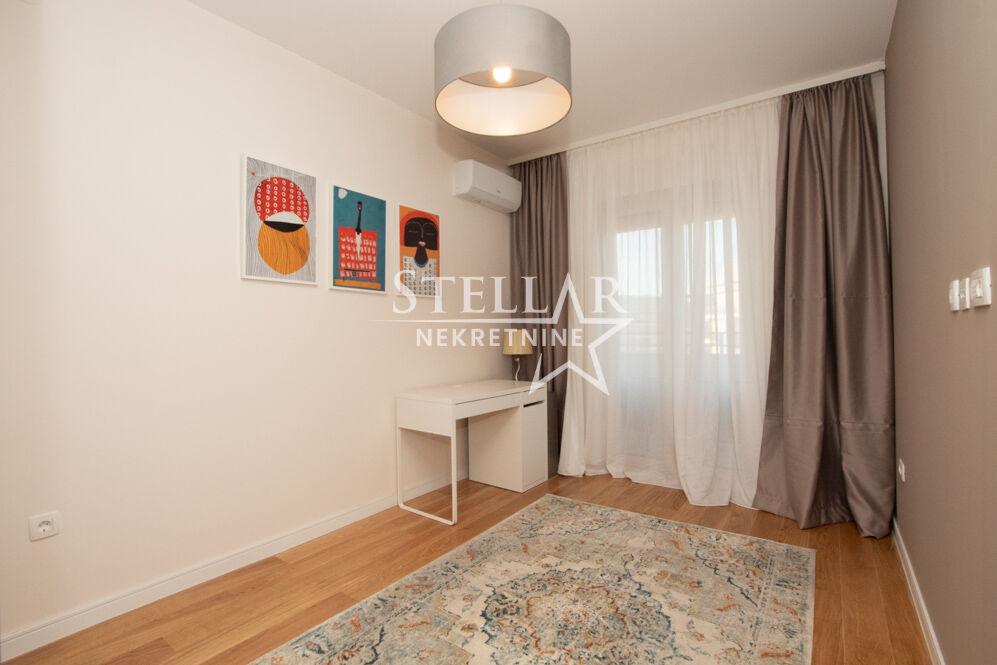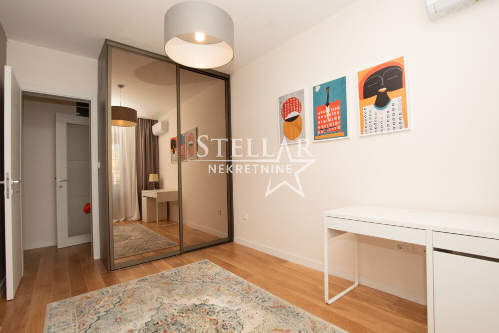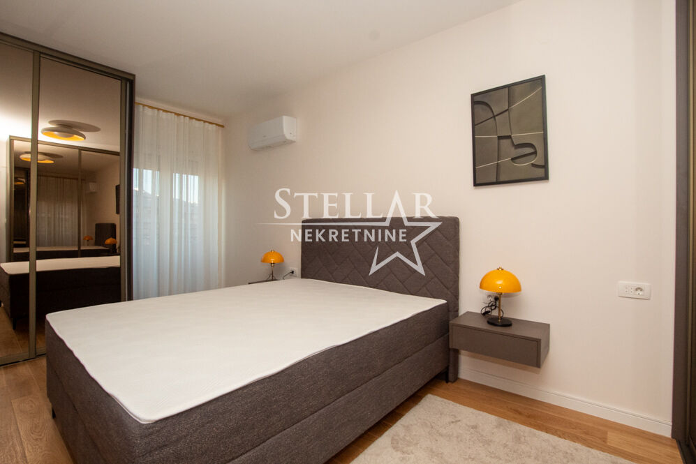Сдается двухкомнатная квартира в районе Central point. Площадь квартиры составляет 72 м², она находится на восьмом этаже нового здания. Квартира очень красиво оформлена, все элементы новые и не использовались. Структура квартиры очень интересная и делает квартиру просторной. Есть входной коридор, который ведет в гостиную, а затем еще один коридор или прихожая, который ведет к спальням и ванной. На самом входе в квартиру есть гостевой туалет. Балкон квартиры ориентирован на запад, и во второй половине дня хорошо освещен солнцем. Квартира находится рядом с торговым центром Big Safhoin, City кварталом и всеми удобствами, которые предлагают эти районы. Сдается на длительный срок с обязательным депозитом. ID недвижимости M691 +382 69 618 445