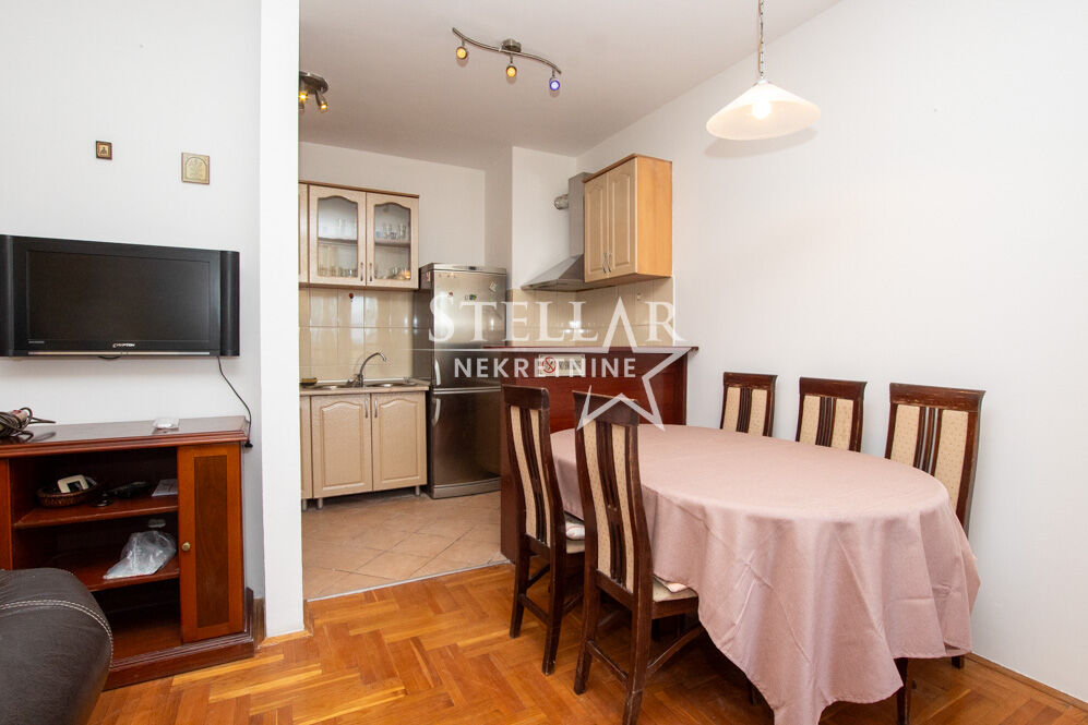 Сдается однокомнатная квартира на Старом аэродроме. Квартира находится на шестом этаже, площадь 48 м2 и имеет западную ориентацию. Квартира полностью оборудована, в спальне находится французская кровать, а с балкона открывается вид на центр города. Вблизи есть все необходимые удобства для нормальной и комфортной жизни. Здесь есть магазины, многочисленные сервисные объекты, недалеко школы и факультеты, а центр города в пяти минутах ходьбы. Квартира сдается на длительный срок с обязательным депозитом. ID недвижимости M690 +382 69 618 445