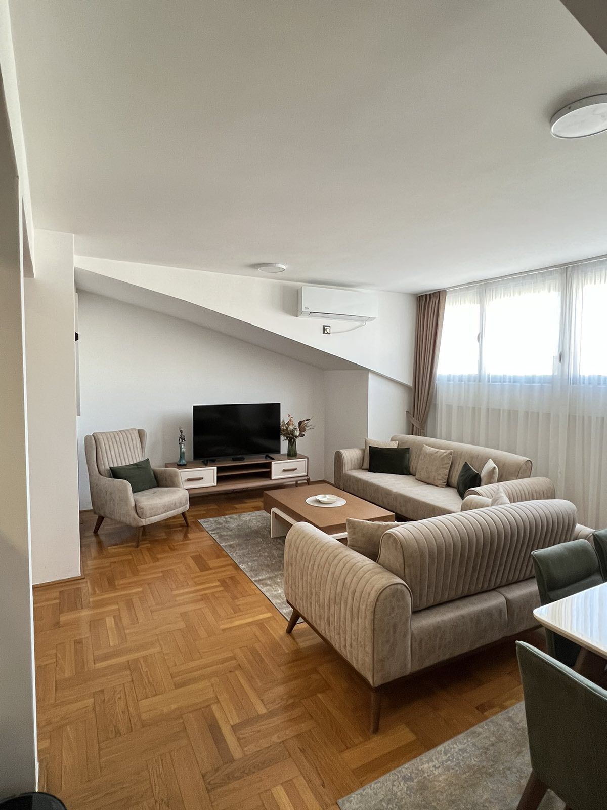Яркая, комфортная и функционально оформленная двухкомнатная квартира с двумя ванными комнатами в очень хорошо построенном и ухоженном здании. Площадь 71м2 5-й этаж, в здании есть лифт Расположение: Старая Аэродром - улица Иосип Броз Тито Открытая гостиная с столовой и кухней. Главная спальня с просторным гардеробом и собственной ванной комнатой с ванной. Вторая современная ванная комната - душевой кабиной. Квартира полностью новая и роскошно меблирована - вся мебель и техника новые. Частная парковка под рампой, только для жителей здания.
