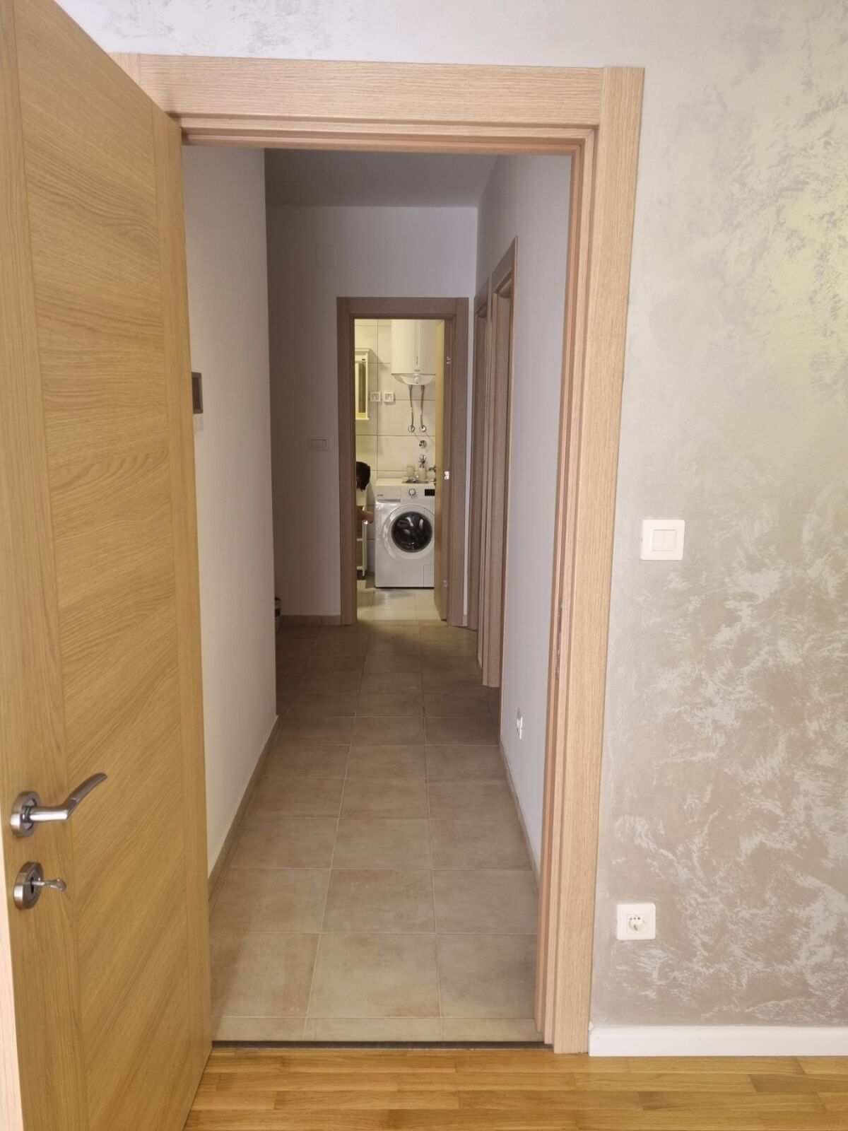 Двухкомнатная квартира в аренду в Забьело, 64м2. Квартира расположена на 2-м этаже здания Eurozox, в котором есть лифт. Структура квартиры: гостиная с кухней и столовой, две спальни, коридор, ванная комната, балкон. Она находится рядом со школой Октоих. Есть место в гараже.