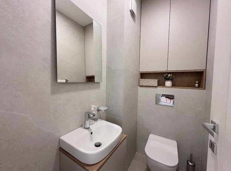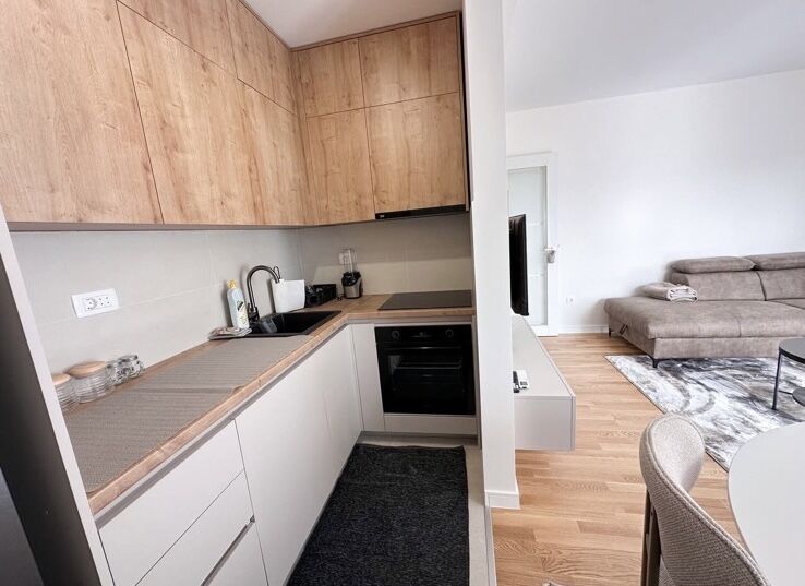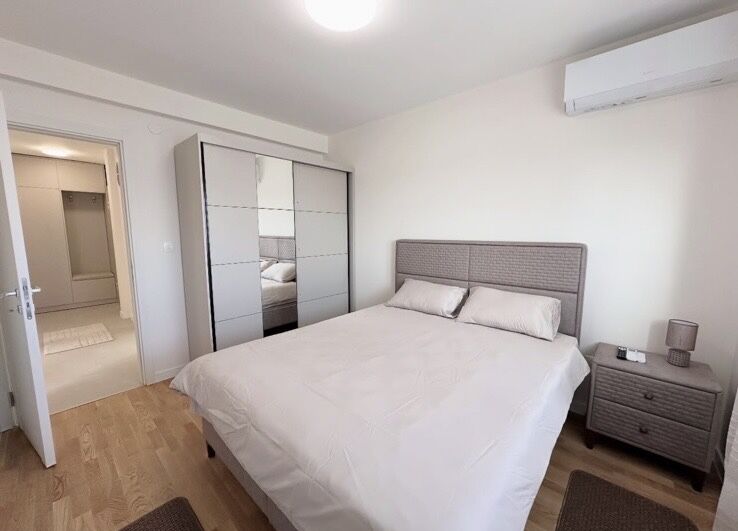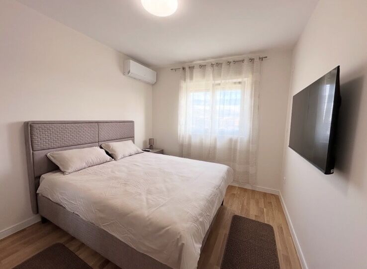 Сдается новая, не занятая квартира площадью 60 м², расположенная в современном здании в Зетаградне на Побрэжье, на улице 4. июля. Квартира находится на 7-м этаже, откуда открывается красивый, панорамный вид из каждой комнаты и полная приватность без шума от транспорта или близлежащих кафе. По структуре квартира включает в себя: просторный коридор, ванную комнату и отдельный туалет, две комфортные спальни, уютную гостиную с обеденной зоной и кухней, террасу с приятным видом. Квартира полностью укомплектована новой мебелью и техникой, вся техника на гарантии. В каждой комнате и гостиной установлены современные кондиционеры, телевизор, а также машины для стирки, сушки и мытья посуды. В стоимость аренды включено место в гараже, а также есть общественная парковка перед зданием. Квартира идеально подходит для тех, кто ищет современное, комфортное и тихое жилье в отличном месте.
