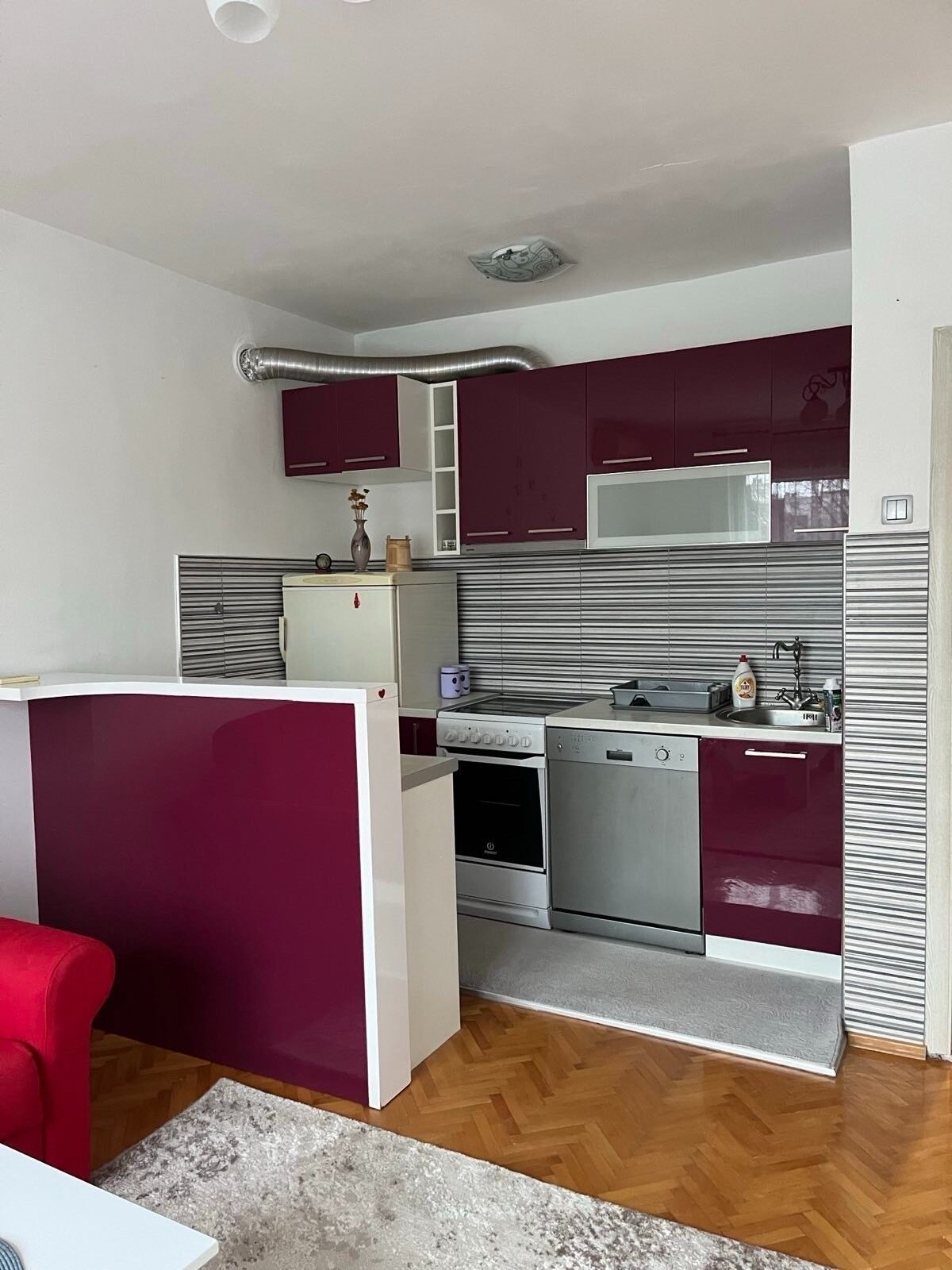 Однокомнатная меблированная квартира 43м2 сдается в аренду на улице Слободана Скеровича в Драче, Подгорице. Квартира расположена на первом этаже жилого здания. Бесплатная парковка спереди и сзади здания.