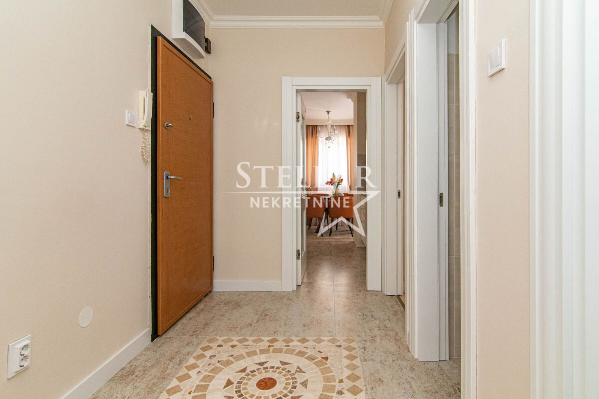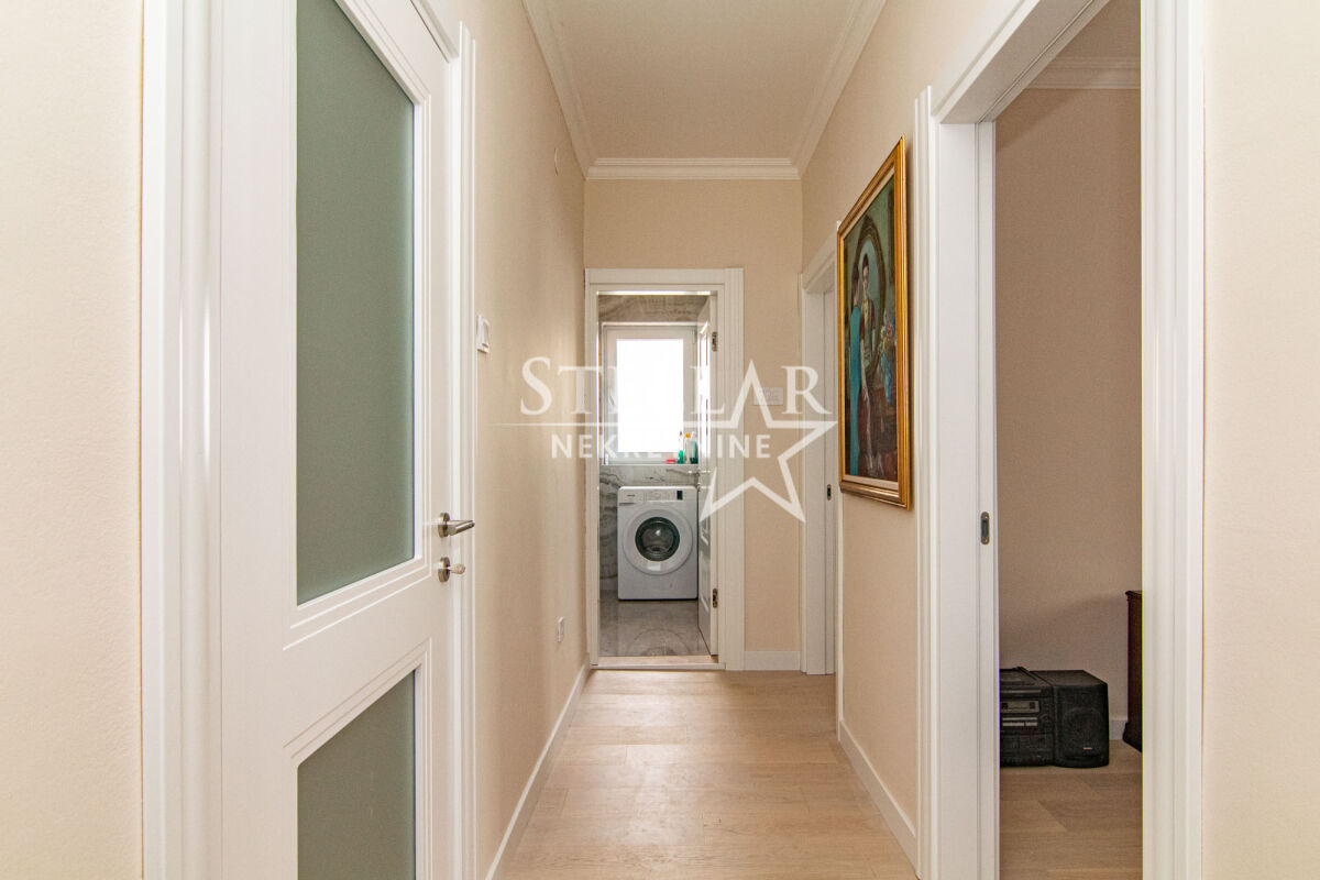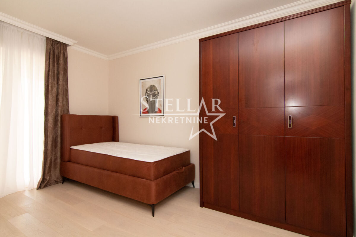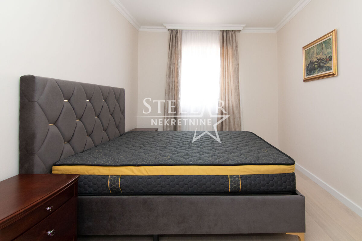 Роскошно меблированная трехкомнатная квартира, не заселённая и оборудованная новой техникой, доступна для аренды. Расположенная на втором этаже здания за Паладой, эта квартира площадью 101 м² предлагает исключительный комфорт и стиль. Просторная гостиная, а также одна из спален ведут на большие балконы, которые предоставляют прекрасный вид, идеальный для отдыха. Кухня современная и полностью оборудованная, в то время как коридор, кухня и ванная комната покрыты элегантной плиткой. Остальную часть квартиры украшает высококачественный дубовый паркет, способствующий теплоте и уюту пространства. Квартира располагает тремя кондиционерами - один в гостиной и по одному в двух спальнях, обеспечивая оптимальную температуру в течение всего года. Кроме туалета, в квартире есть ванная комната с душевой кабиной и стиральной машиной. На кухне находится посудомоечная машина. Сдается на длительный срок с обязательным депозитом. ID недвижимости S83 +382 69 618 445