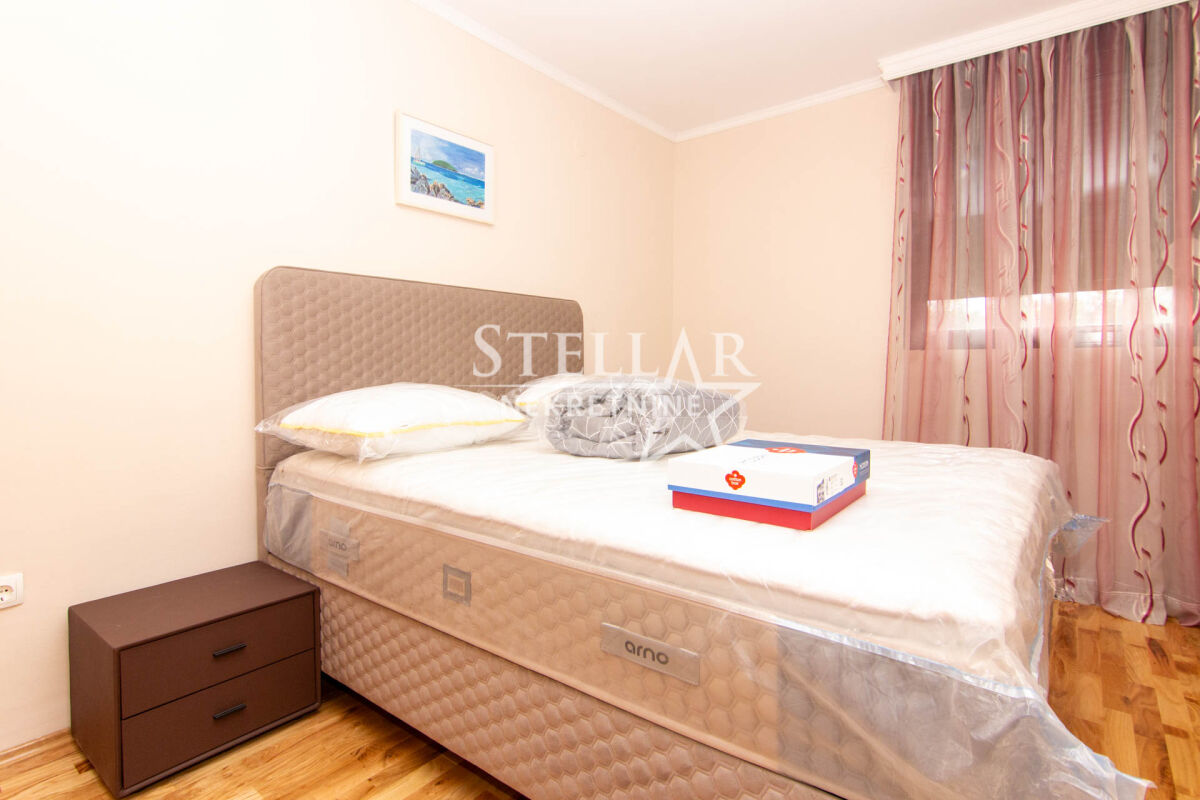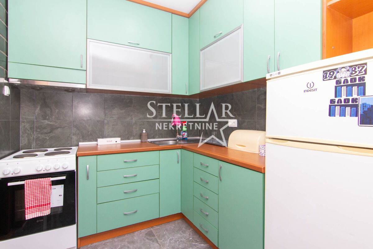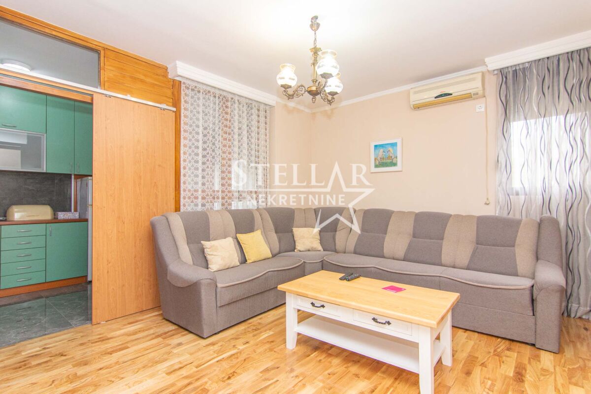 Сдается полностью меблированная однокомнатная квартира 50м2. Квартира находится на первом этаже в здании с 4 лифтами. Квартира полностью отремонтирована. Она южной ориентации, что делает её очень солнечной. В гостиной есть кондиционер, а из остального оборудования в квартире есть стиральная машина. Полный набор посуды и постельное белье находятся в квартире. Не подходит для домашних животных. Квартира расположена рядом с начальной школой «Štampar Makarije». Локация отличная, рядом находятся две начальные школы, детские сады, Дом здоровья, магазины, кафе, рестораны, спортзалы и парки. Парковка общая и находится повсюду вокруг здания. Сдается на длительный срок с обязательным депозитом. ID недвижимости M86 +382 69 618 445