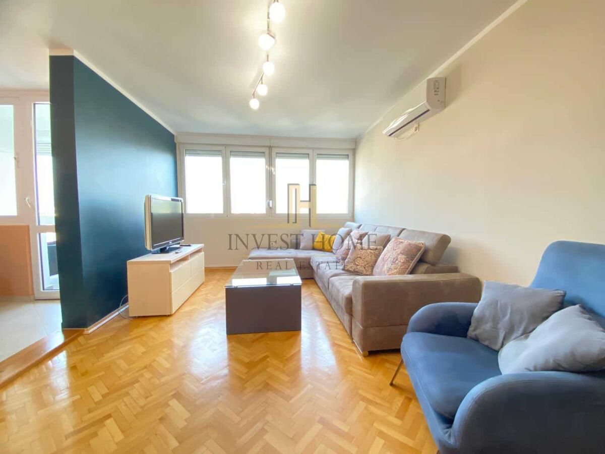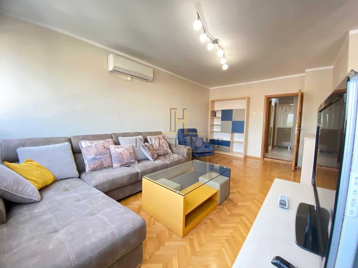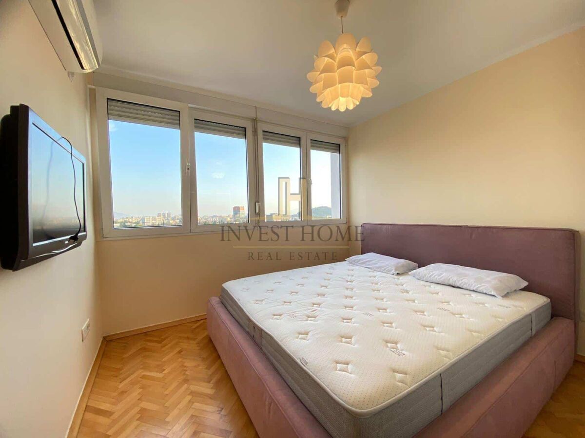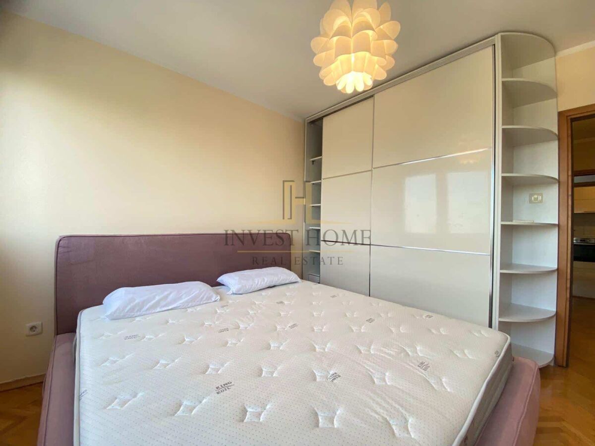 Для сдачи двухкомнатная квартира на Преко Мораче, общей площадью 82м2. Квартира находится на девятом этаже жилого здания, которое имеет лифт. Структура квартиры: гостиная, кухня и столовая, коридор, две спальни, ванная комната и туалет, два балкона. Квартира расположена напротив средней школы "Ivan Uskoković", многочисленных парков для детей, факультетов, магазинов, ресторанов и других городских мероприятий.