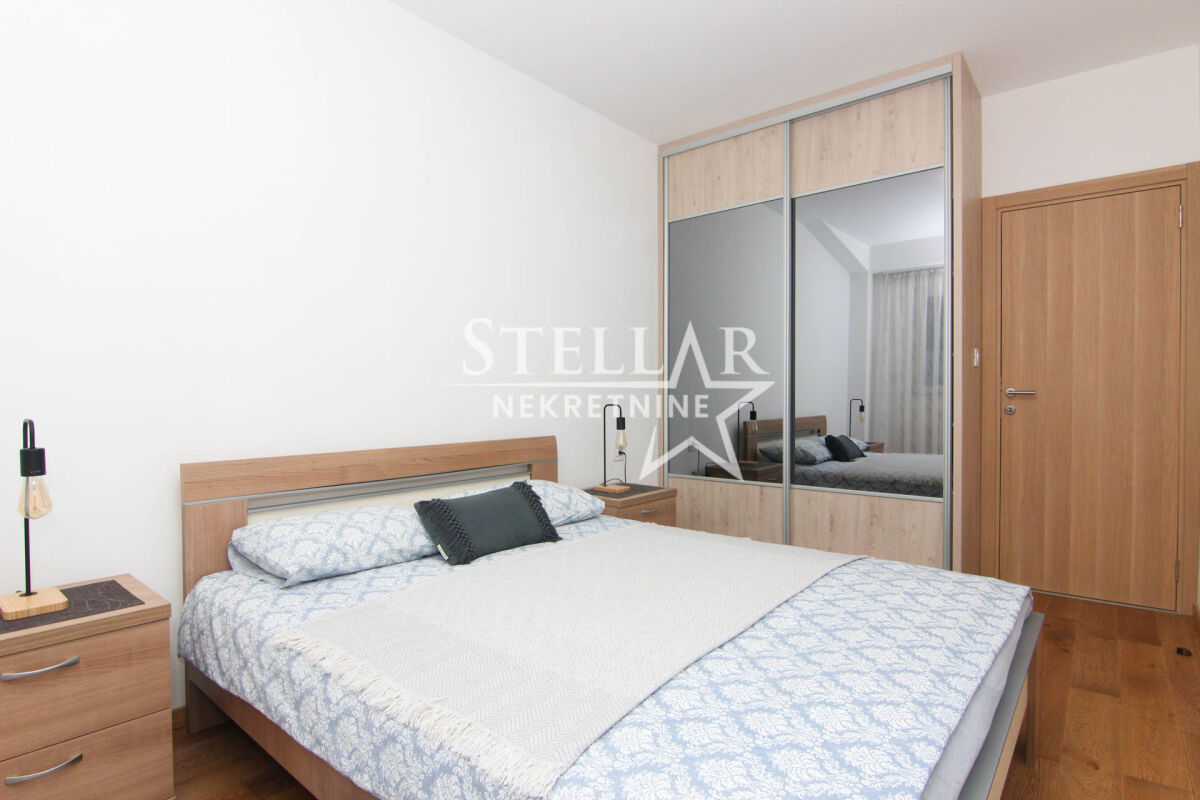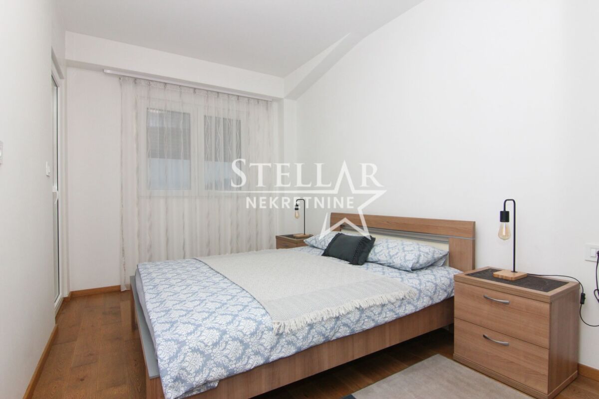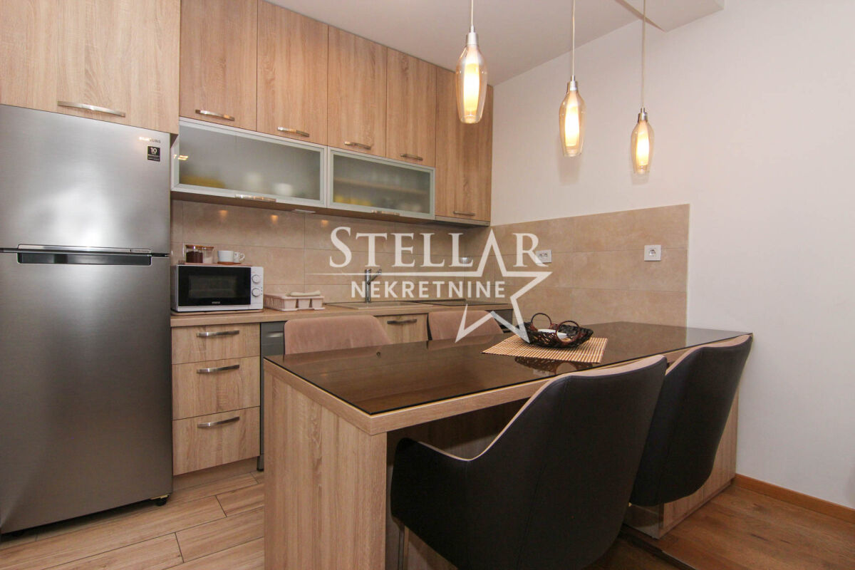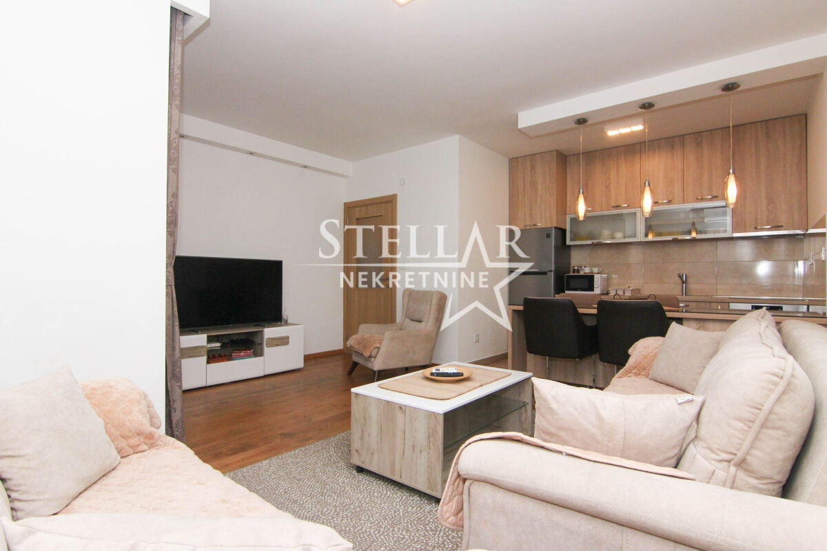 Сдается полностью меблированная однокомнатная квартира 50м2 на Побрежье. Квартира находится на шестом этаже в здании с лифтом. Ориентация квартиры западная. В гостиной есть кондиционер, а из остального оборудования квартира имеет стиральную машину и посудомоечную машину. В прихожей находится большой шкаф. Квартира не подходит для домашних животных. Здание находится в отличном месте, рядом: два крупных торговых сети, школы, детские сады, Дом здоровья, кафе, рестораны, бутики и тренажерные залы. Парковка общая и находится повсюду в окрестностях здания. Сдается на длительный срок с обязательным депозитом. ID недвижимости S93 +382 69 618 445