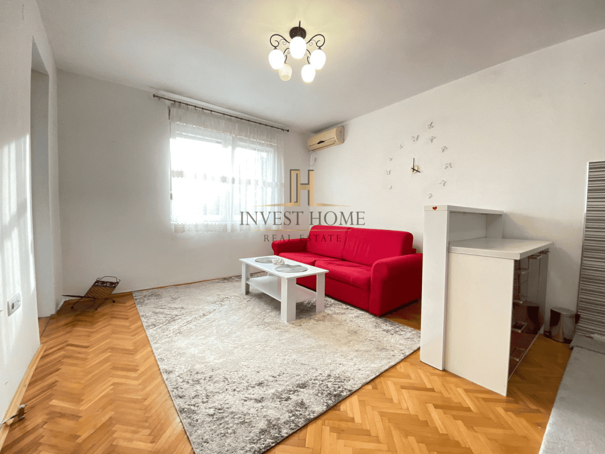 Сдается однокомнатная квартира на Драче, площадью 44м2. Квартира хорошо организована, находится на высоком первом этаже. Имеет застекленную террасу. Вблизи находятся начальные и средние школы, а также факультеты, рестораны, кафе и парк с детскими развлечениями.