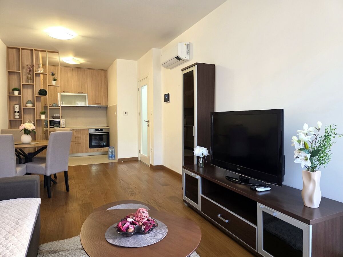 Однокомнатная квартира с хорошей мебелью в аренду, площадь 46 м2, в Толоška šuma в Подгорице. Она расположена в жилом и коммерческом здании на улице Баку, в университетской части Подгорицы. Это новый жилой и коммерческий комплекс Green Level, который предлагает максимальный комфорт, качество и функциональное жилое пространство. Квартира находится на 2-м этаже, в здании два лифта, которые роскошно обставлены. Ориентирована на запад. Планировка: прихожая, жилая зона с обеденной зоной и кухней, терраса, спальня и ванная комната. Квартира полностью и красиво меблирована. В гостиной и спальне установлена мультисплит-система кондиционирования. В кухне и ванной также установлено теплый пол. Одно парковочное место в гараже включено в стоимость аренды. При подписании договора аренды арендатор обязан внести залог в размере месячной арендной платы, который будет возвращен в конце срока действия договора, если все условия договора были соблюдены.