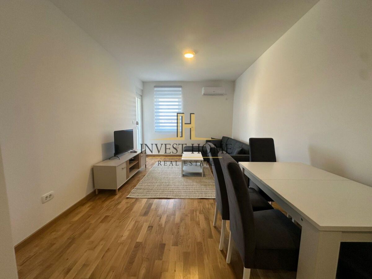 Для сдачи однокомнатная квартира в Загорица, площадью 43м2. Квартира находится на первом этаже жилого дома, который оснащен лифтом. Структура квартиры: гостиная с кухней и столовой, спальня, коридор, ванная комната, балкон. Расположена рядом со школой, детским садом, парками, а также со всеми городскими удобствами. Имеется парковочное место.