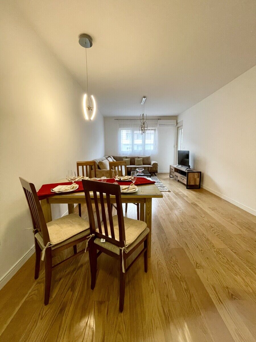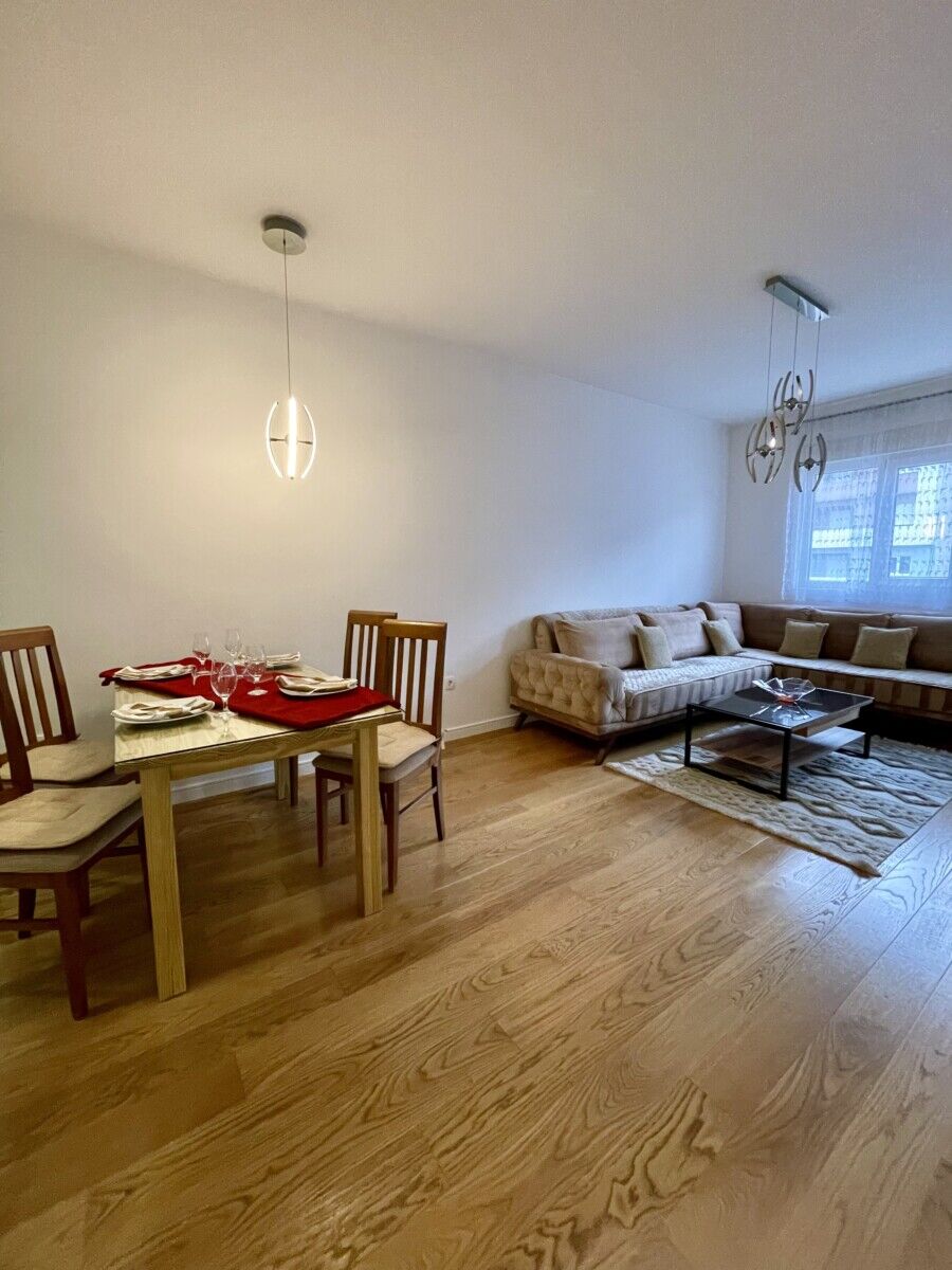 Однокомнатная квартира площадью 55 м² в аренду, расположенная в Central Point. Цена 600€ в месяц. Квартира имеет функциональную планировку и состоит из гостиной с кухней и столовой зоной, спальни, ванной комнаты и террасы. Пространство светлое, аккуратное и подходит для комфортного проживания. Аренда гаража: 70€ в месяц (по желанию)