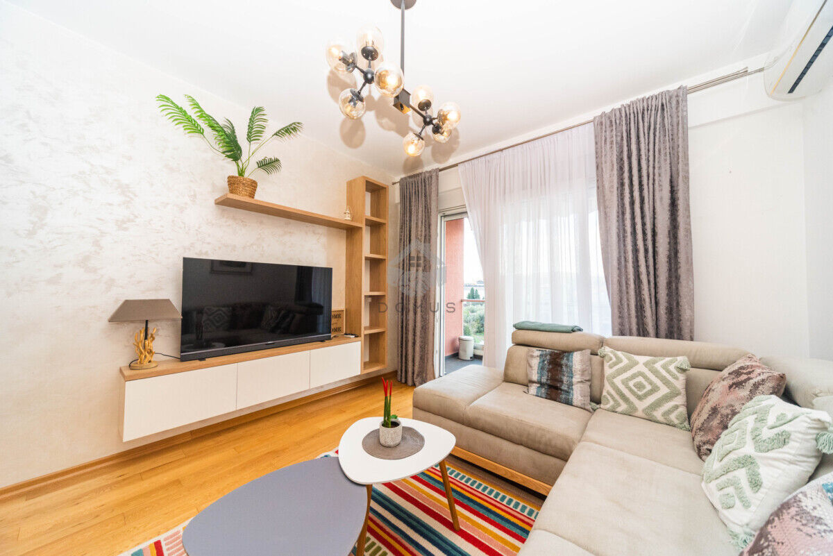 Сдается однокомнатная квартира площадью 48 м², на IV этаже качественного жилого дома у подножия холма Любович. Квартира полностью меблирована, с тщательно выполненным интерьером на заказ, что обеспечивает максимальную функциональность и современное визуальное восприятие пространства. Состоит из гостиной, столовой, кухни, спальни, ванной комнаты, коридора и террасы. Дом, в котором находится квартира, оснащен двумя лифтами, а жильцам предоставлена парковка вокруг дома, что дополнительно способствует комфорту повседневной жизни. Благодаря расположению, структуре и качеству оборудования, квартира является отличным выбором как для жизни, так и как инвестиция с надежной отдачей. Депозит в размере одной месячной аренды и договор на год обязательны.