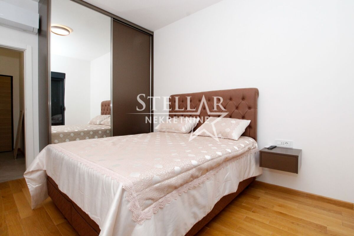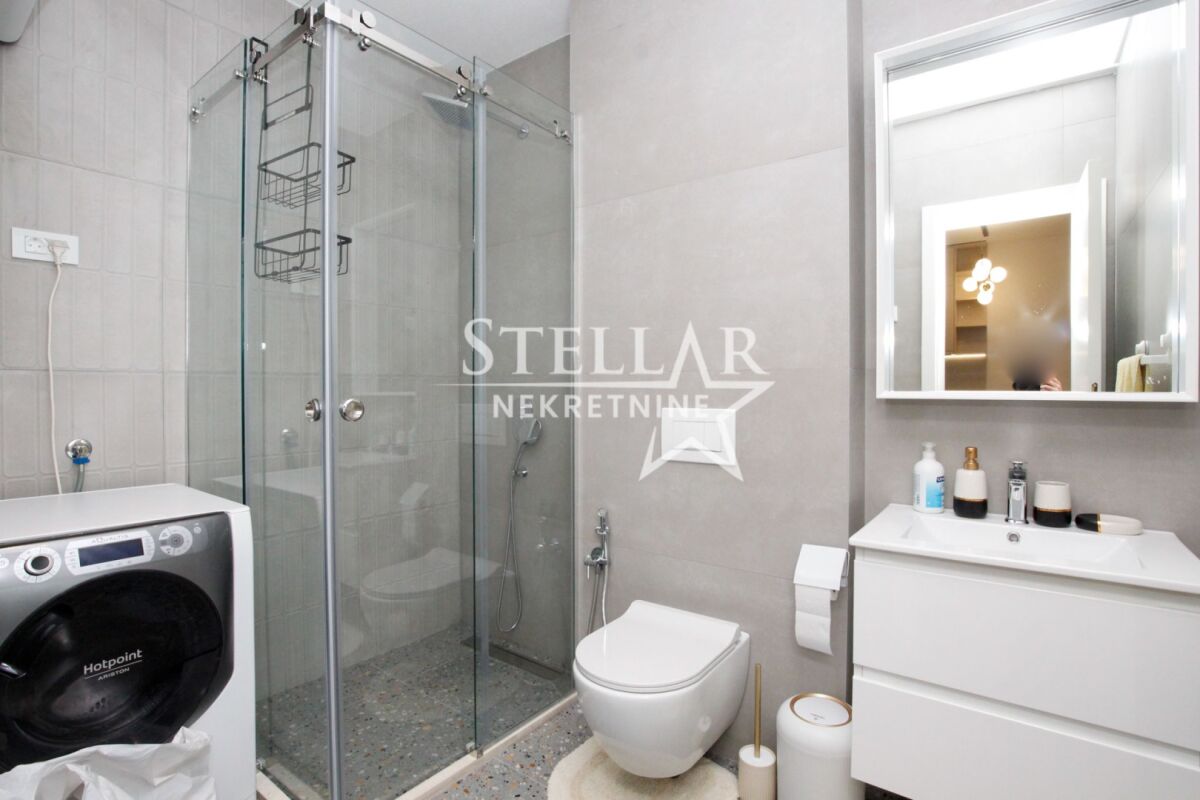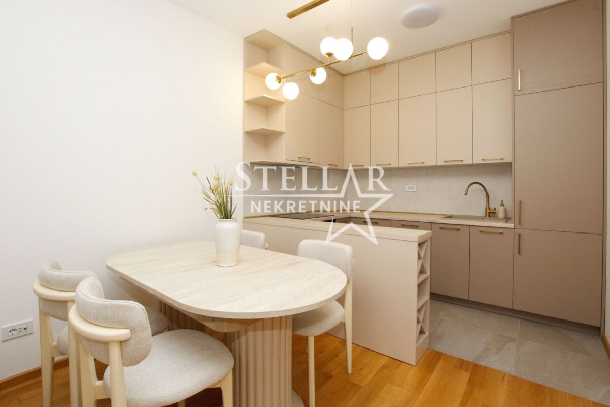 Сдается однокомнатная квартира в комплексе зданий Cortex selo в Забьеле. Квартира площадью 50м2, поэтому очень просторная и удобная. Расположена на первом этаже и полностью оборудована. Есть всё, до мельчайших деталей, таких как escajg и постельное бельё. Балкон квартиры ориентирован на юг, поэтому освещён весь день. В квартире ранее никто не жил, вся мебель новая. Расположение в западной части Забьела, в районе, который быстро развивается и становится одним из любимых мест для жизни. Сдается на длительный срок с обязательным депозитом. ID недвижимости M722 +382 69 618 445