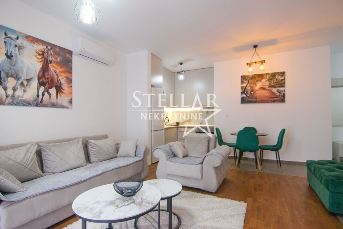 Сдается полностью меблированная однокомнатная квартира 56м2. Квартира находится на втором этаже в здании с лифтом. Здание новое, и квартира никогда не была заселена. Есть просторная гостиная с кондиционером, а из другой техники есть стиральная машина и посудомоечная машина. Квартира pet-friendly. Расположена в отличном месте рядом с торговым центром Big fashion, а также рядом находится Клинический центр Черногории, многочисленные рестораны и парки. Сдается на длительный срок с обязательным депозитом. ID недвижимости S101 +382 69 618 445