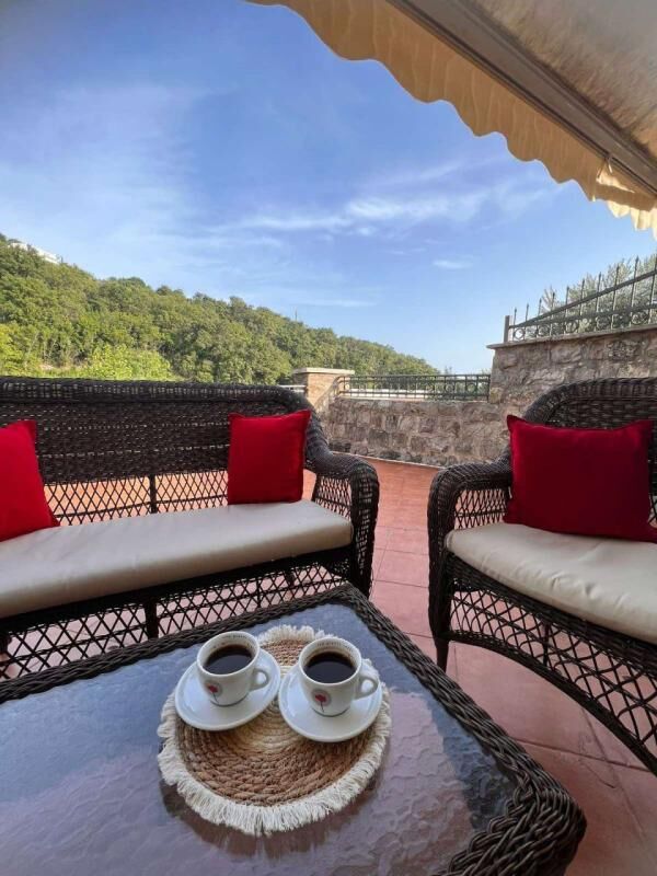 Аутентичная каменная вилла в Rijeka Reževići. Три этажа по 100м2, плюс пристройка 143м2. На этаже преземле - таверна, 2 ванные комнаты; на 1 этаже: кухня - столовая, гостиная, санузел и комната; на 2 этаже: 5 комнат и санузел. Просторная обустроенная терраса: для установки бассейна, уличного гриля. Хороший интернет. Парковка на 8 мест. Водопровод - городской. До моря 150м. Аренда в июне: 520/сутки; июле, августе: 570/сутки.