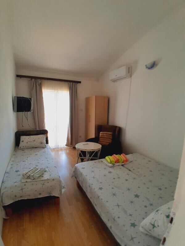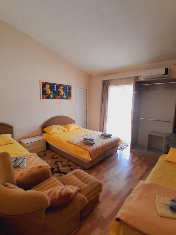 Пентхаус расположен на второй линии моря в 100м от пляжа. Квартира площадью 120м2 + 100м2 терраса с широким видом на море. В квартире: 3 спальни, просторная гостиная, столовая, большая кухня, 3 ванные комнаты (1 четырехместная комната, 2 трехместные, 3 выдвижные кровати в гостиной). Wi-Fi, кабельное, в каждой комнате ТВ, 3 кондиционера, мебель для террасы, шезлонги, качели, большой холодильник на кухни и маленькие холодильники на терассе, машинка для стирки. Подходит либо для большой семьи (1 мастер - спальня и 2 детские комнаты), либо для 3 семей, либо для большой компании друзей. Максимальная вместимость до 14 человек. Парковка во дворе. Животные - обсуждаются. Оплата за месяц + коммунальные услуги (интернет бесплатный). В сезон (июнь, июль, август, сентябрь) по-суточно. Аренда на год и меньший срок. Оплата сразу за первый месяц + последний месяц срока + депозит (половина месячной оплаты).