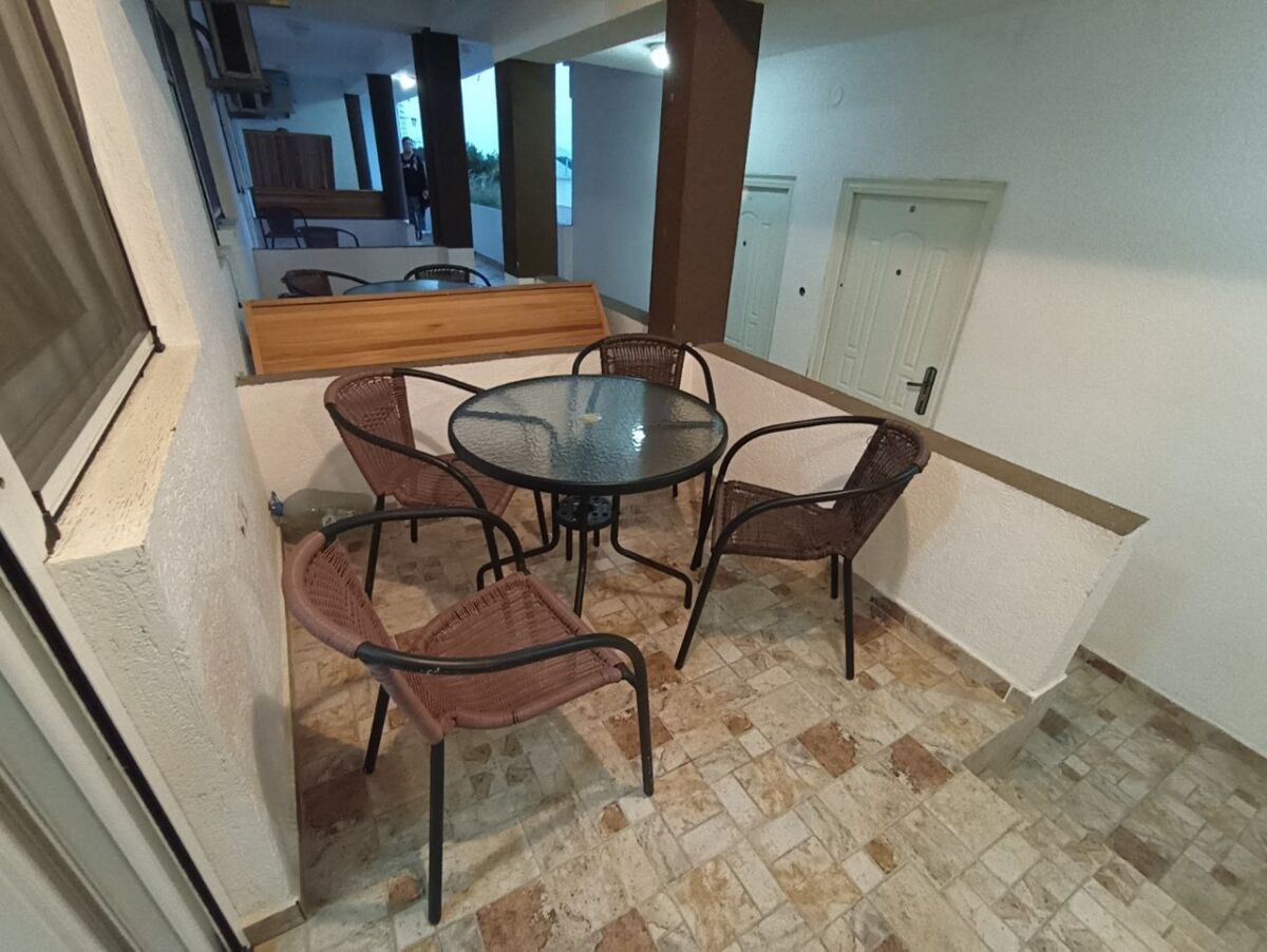 Однокомнатные квартиры сдаются до начала сезона. на втором этаже трехэтажного здания. Сплит-система, 1 спальня, ванная комната с душем. У входа есть небольшая терраса. Вид на море. 30 евро/сутки.