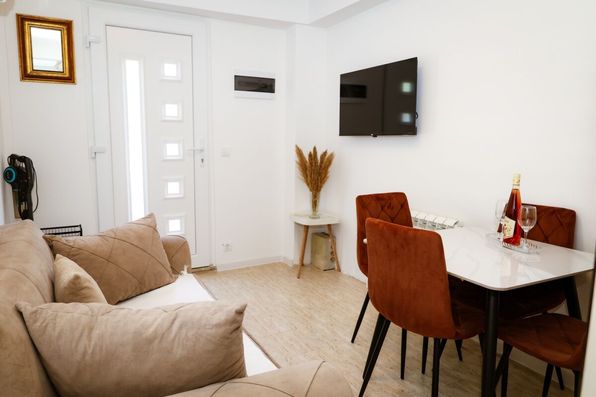 Находится в отличном месте в тихом районе. В шаговой доступности от Boka Place в Порто-Монтенегро, ресторанов, супермаркетов и школы. 📐 Площадь квартиры: 40м² 🛏 Интерьер включает в себя: • Кухня с обеденной зоной и гостиной • Спальня • Ванная комната • Терраса Удобства квартиры: • Кондиционер • Полностью оборудованная кухня: духовка, маленький холодильник и все необходимые принадлежности • Стиральная машина 🚙 Парковочное место рядом. 🤝 Условия оплаты: • Первая и последняя аренда + возвратный депозит. • Коммунальные услуги оплачиваются отдельно. 💶 Цена: €450/месяц (до лета)